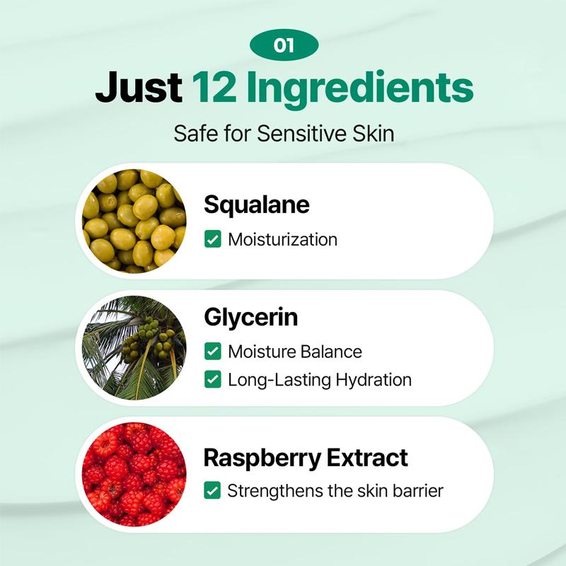 Минимальные ингредиенты для максимального комфорта: Этот крем, состоящий всего из 12 ингредиентов, содержит более 93% элементов натурального происхождения, таких как сквалан. Его упрощенная формула делает его безопасным и отличным выбором для ежедневного использования на чувствительной коже.