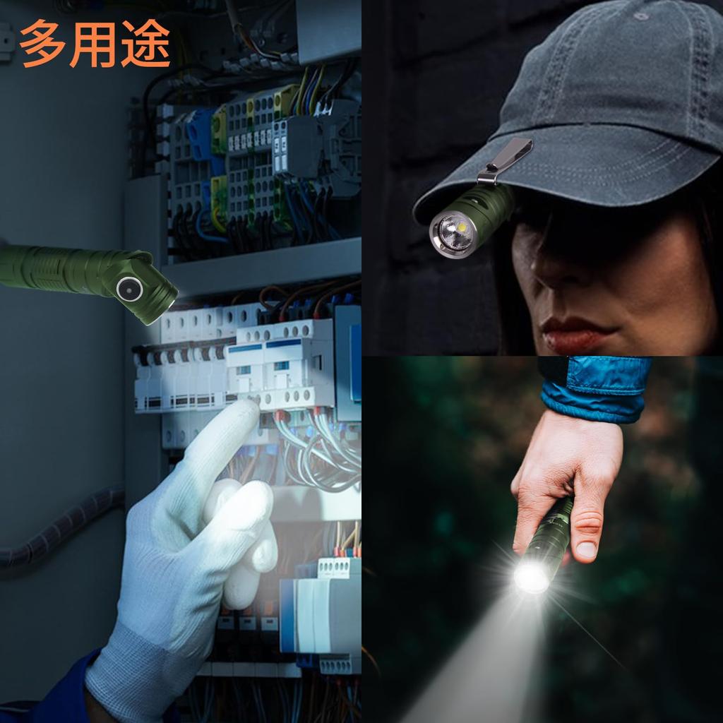 Светодиодный фонарик JeckLamp с поворотом на 90 градусов — это высокопроизводительный фонарик, идеально подходящий для активного отдыха и чрезвычайных ситуаций.. Он может похвастаться яркостью 1200 люмен и шестью режимами освещения. (Низкий 100 люмен, Средний 400 люмен, Высокий 900 люмен, Турбо 1200 люмен, Маяк и SOS). Корпус, изготовленный с высокой точностью, оснащен удобной поворотной на 90 градусов головкой, съемной клипсой и мощным магнитом.. Несмотря на компактный 3,9-дюймовый экран, он поддерживает зарядку Type-C и имеет защиту от перезаряда для 10 часов непрерывного использования.. Индикатор состояния зарядки на корпусе делает его идеальным для работы в темноте, кемпинга и готовности к стихийным бедствиям.. Прочный зеленый корпус сочетает в себе практичный дизайн и функциональность.