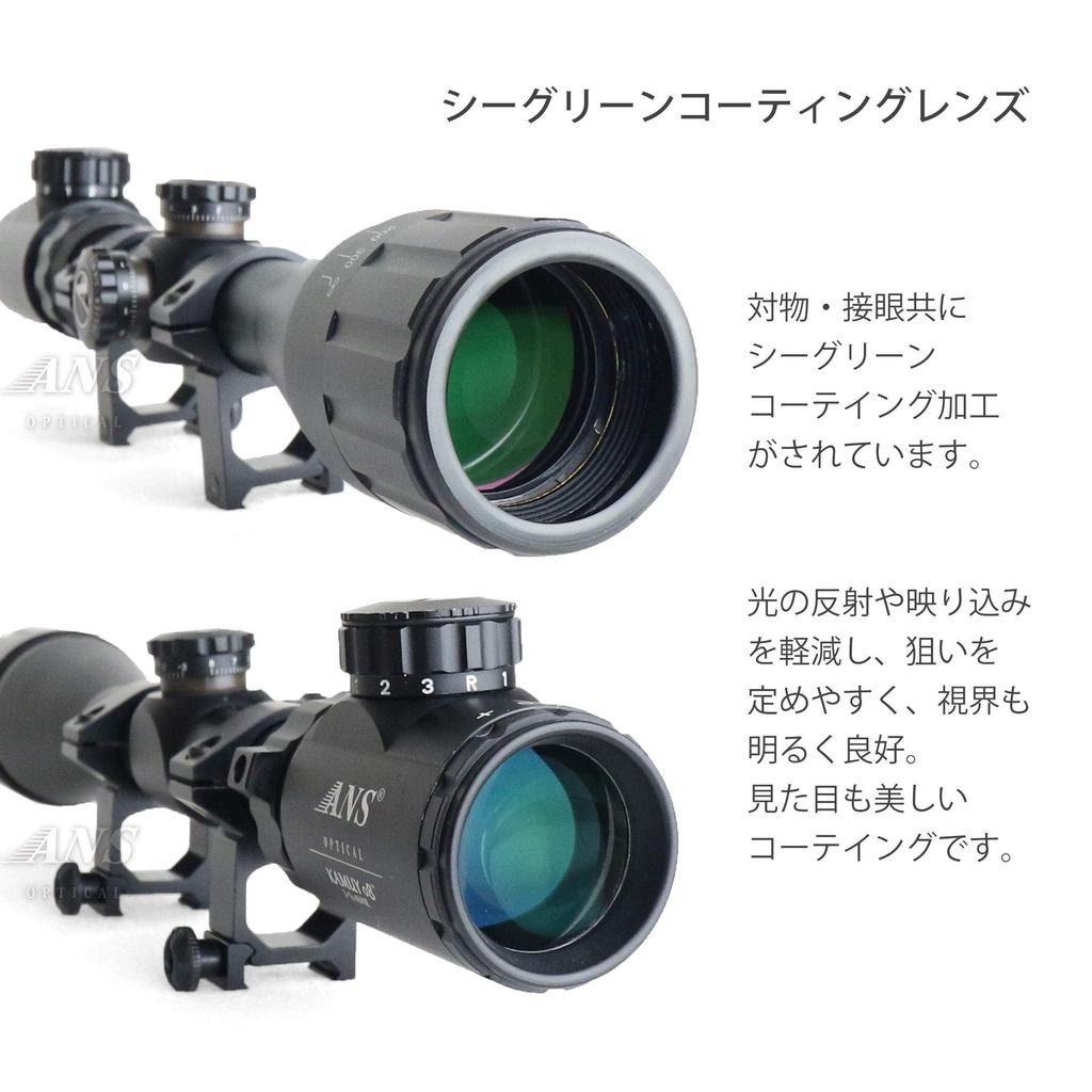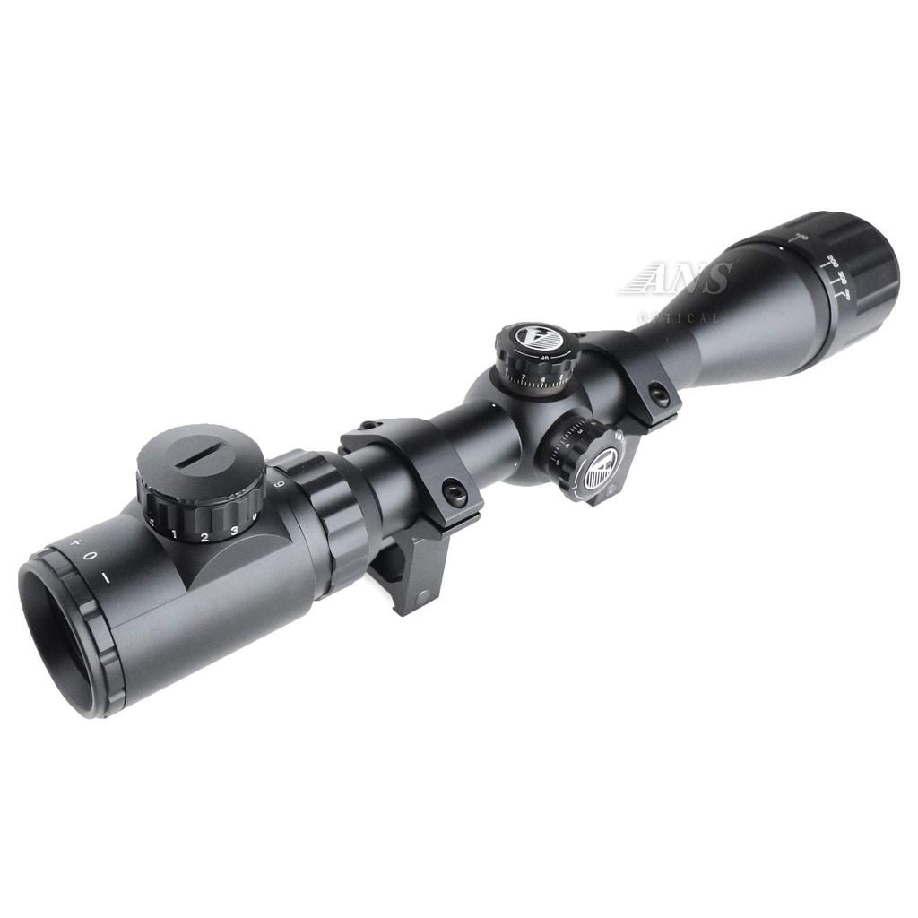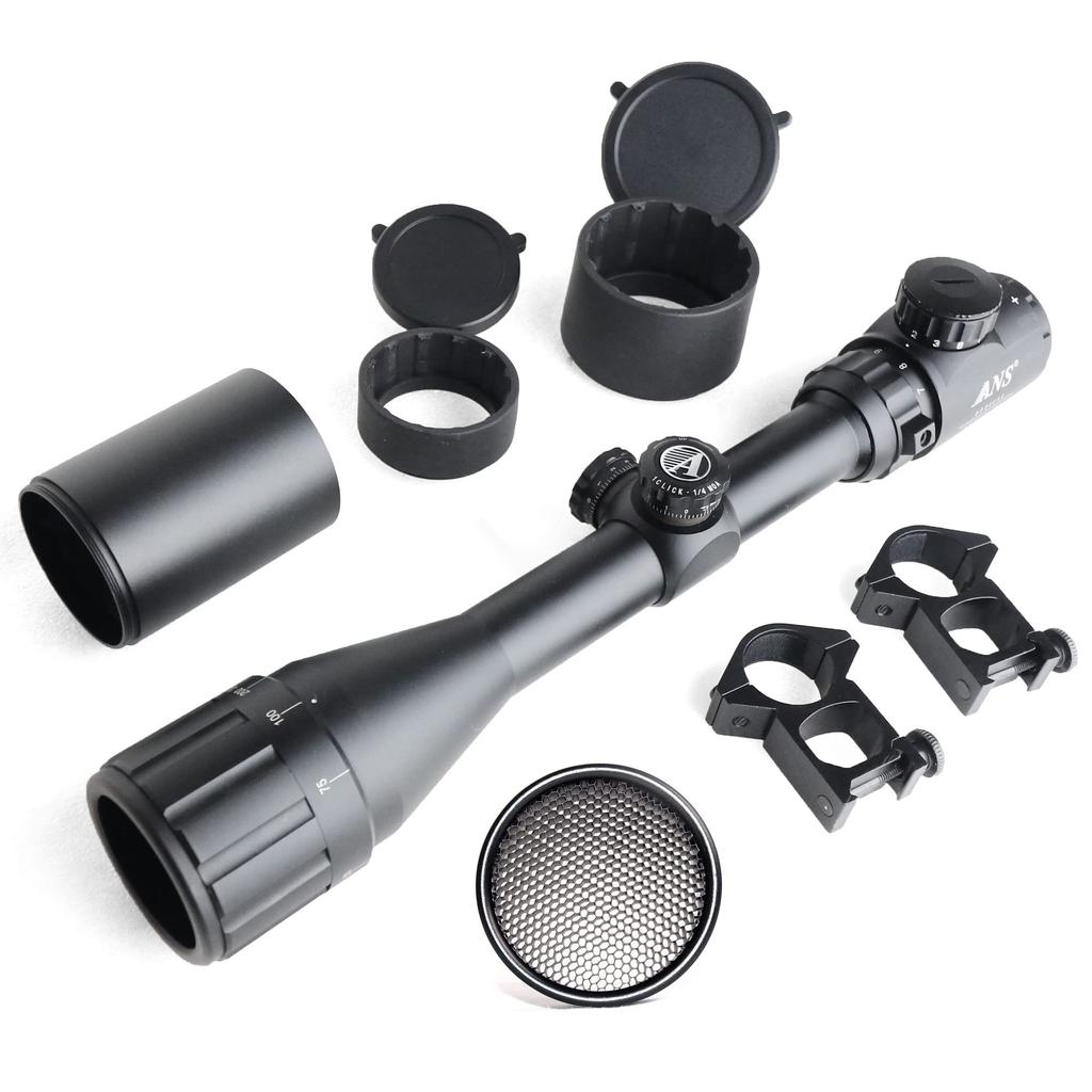Оптический прицел ANS Optical с передней фокусировкой 3-9x40 AOE с подсвечиваемым красным/зеленым/синим передним козырьком, блендой Kill Flash, высоким кольцом крепления и крышкой Butler