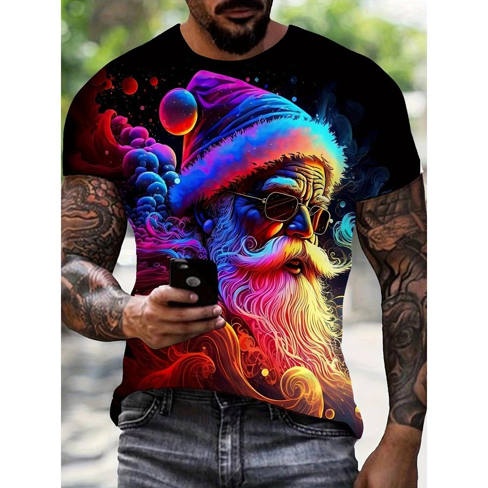 Мужские футболки с принтом хорошо продаются к Рождеству. Модная мужская одежда с короткими рукавами и забавным Санта-Клаусом