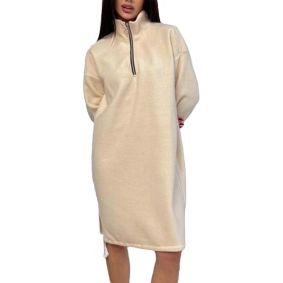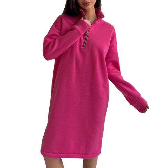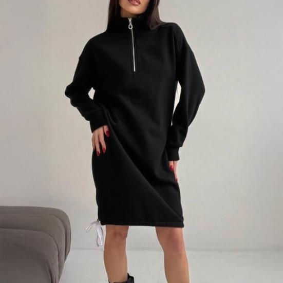 Это элегантное женское платье изготовлено из высококачественного полиэстера, обеспечивающего исключительную эластичность и мягкость, а также ощущение комфорта.. Добавление бархатной подкладки обеспечивает дополнительное тепло, что делает его идеальным для холодной погоды.. Однотонный дизайн излучает элегантность и стиль, идеально подходит для различных случаев..