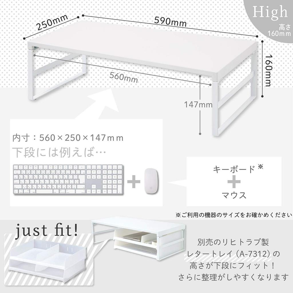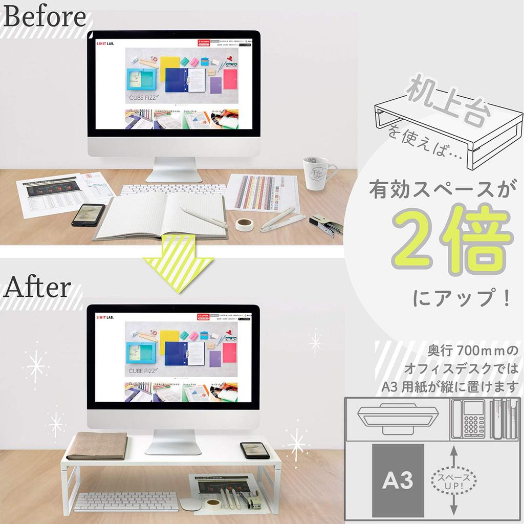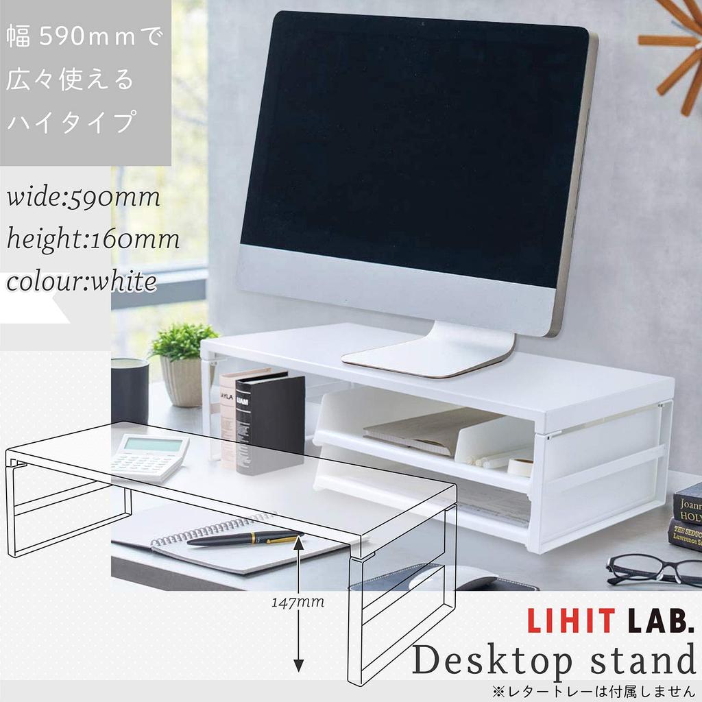 LIHIT LAB Подставка для компьютера, Подставка для монитора, Настольная подставка, Белая, Ширина 59 см x Глубина 25 см x Высота 16 см, Грузоподъемность 15 кг, A7333-0
