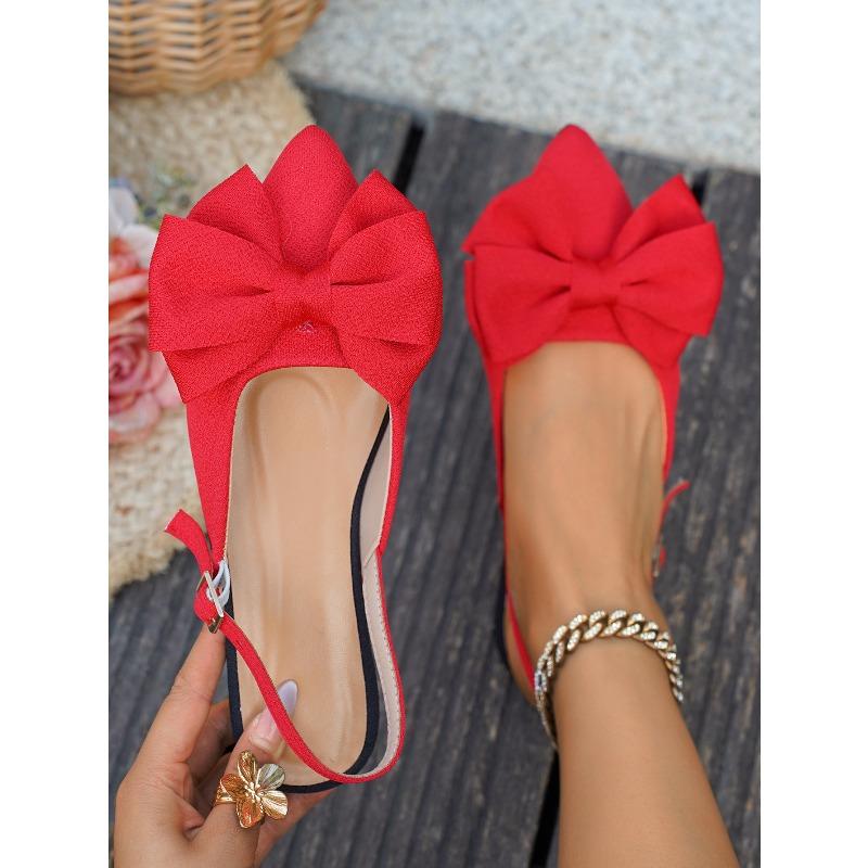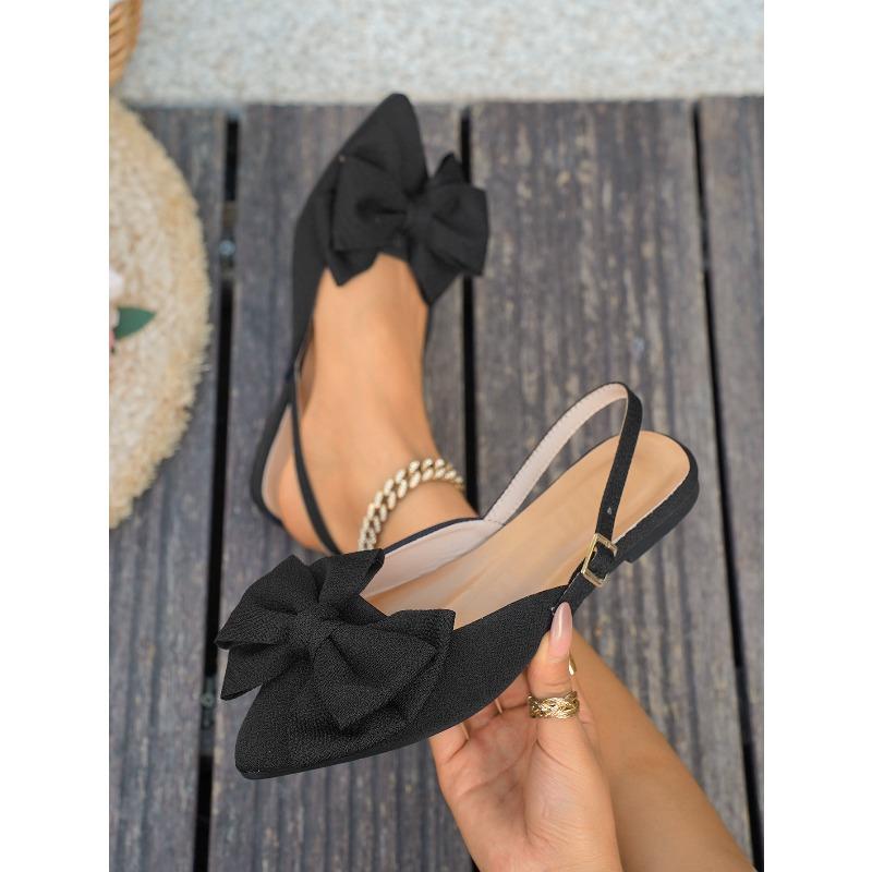 Летние плоские сандалии-повязки с бантом 2025 Новый стиль Большой размер Остроносые сандалии с открытой пяткой для женщин