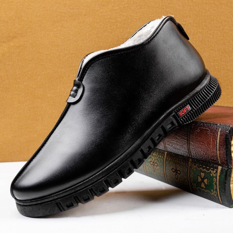 Мужские хлопковые туфли зимние бархатные теплые для среднего возраста теплые повседневные туфли кожаная поверхность ветрозащитные утолщенные легкие удобные хлопковые туфли