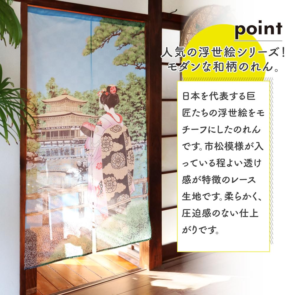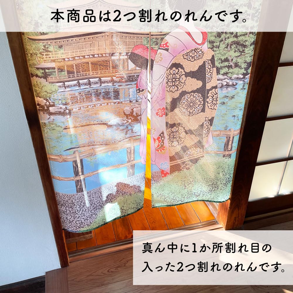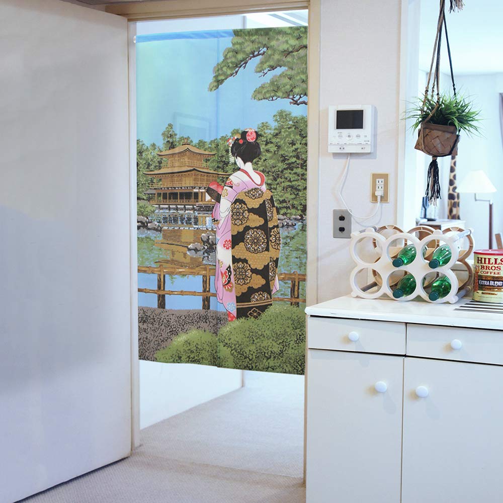 Noren Kobo Японский стиль Традиционный 85 см Широкий x 150 см Майко и Кинкаку-дзи Кружево 2409 Норен, Гобелен укиё-э, Занавеска половинной длины, Дизайн, Длинный,