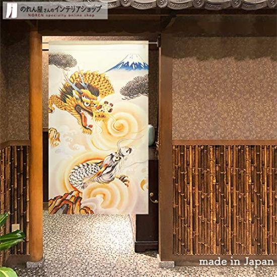 Noren Kobo Noren Серия Талисман Удачи Клетчатый Кружевной Принт Бог Удачи Два Дракона и Гора Ширина 85см х 150см 93451 Занавеска-половинка, Дизайн, Фудзи,