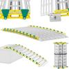 Складная конструкция экономит место и позволяет легко хранить его в багажнике автомобиля или в тесном углу вашего дома. Он также оснащен ручкой сбоку для удобной переноски.. Рифленая поверхность рампы обеспечивает противоскользящий эффект. Толстые резиновые накладки на нижней части торцевой пластины предотвращают скольжение рампы во время использования.. Два штифта внутри стабилизируют рампу, исключая опасения ее смещения во время использования.. Боковые пластины по обеим сторонам алюминиевой рампы предотвращают соскальзывание рампы во время использования, обеспечивая надежное использование.. Алюминиевый материал прочный, жесткий и упругий, что обеспечивает превосходную долговечность.. При использовании только одной стороны рампы закрепите ее прилагаемым штифтом, чтобы предотвратить подъем другой стороны.. Ограничьте вес каждой стороны до 150 кг. Ступенчатые рампы облегчают подъем и спуск оборудования через лестницы, пороги и входные проемы, а также облегчают транспортировку грузов.. Он может вместить широкий спектр инвалидных колясок, электрических инвалидных колясок, тележек, велосипедов, тележек и т. д.. (Не распространяется на мотоциклы или электрические трехколесные велосипеды). При погрузке инвалидной коляски убедитесь, что ширина коляски не превышает 70 см.