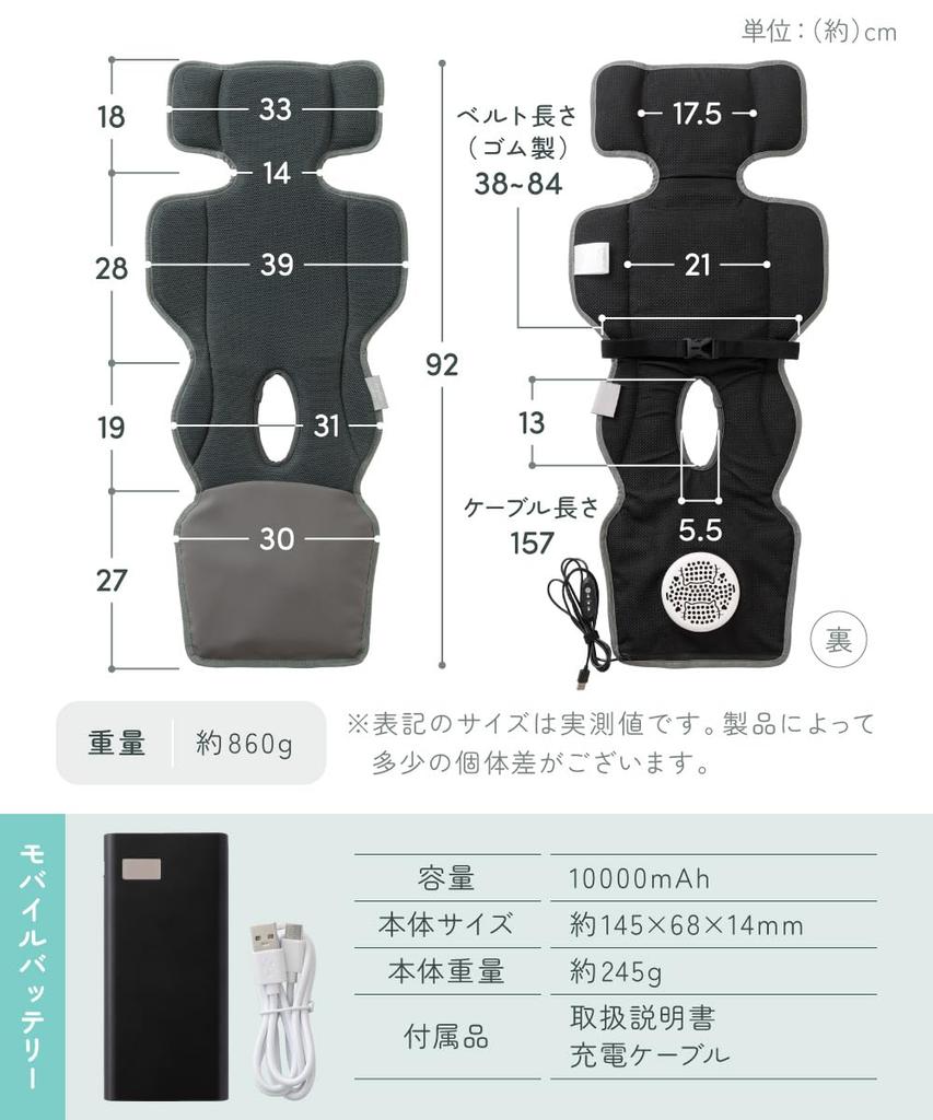 [Приблизительно. Размер] [Сиденье-веер] 39 см Ш x 92 см В [Мобильный] 6,8 см Ш x 14,5 см В x 1,4 см Г [Материалы] [Сиденье-веер] Полиэстер, Силикон [Вентилятор и контроллер] АБС-смола [Мобильный] Тип маркировки PS: PSE, Зарегистрированное название предприятия: У-Плюс Ко., Лтд., Вместимость: 10000 мАч, Вход (Type-C): DC5V/2.4A, 5V/3A, 9V/2A, 12V/1.67A (Максимум), Выход (Тип-A): DC5V/3A, 9V/2A, 12V/1.5A (Максимум). [Безопасный для детей дизайн воздушного потока] 26 вентиляционных отверстий эффективно подают прохладный воздух ко всему телу. Регулируемые размеры и количество отверстий обеспечивают тщательный уход за головой и шеей, которые подвержены тепловому удару, и спиной, которая склонна к потоотделению.. [4-слойная подушка для дышащего комфорта] 4-слойная подушка позволяет воздуху проходить даже когда ребенок сидит, обеспечивая при этом мягкую поддержку.. [Включает карман для пакета со льдом в области стоп] Карман для пакета со льдом идеально подходит для тех дней, когда хочется немного дополнительной прохлады, например, в жаркий день.. Положив пакет со льдом (продано отдельно), вы можете наслаждаться прохладным бризом даже посреди лета. [Если ваши ноги испачкаются, вы можете протереть их насухо быстрой салфеткой.