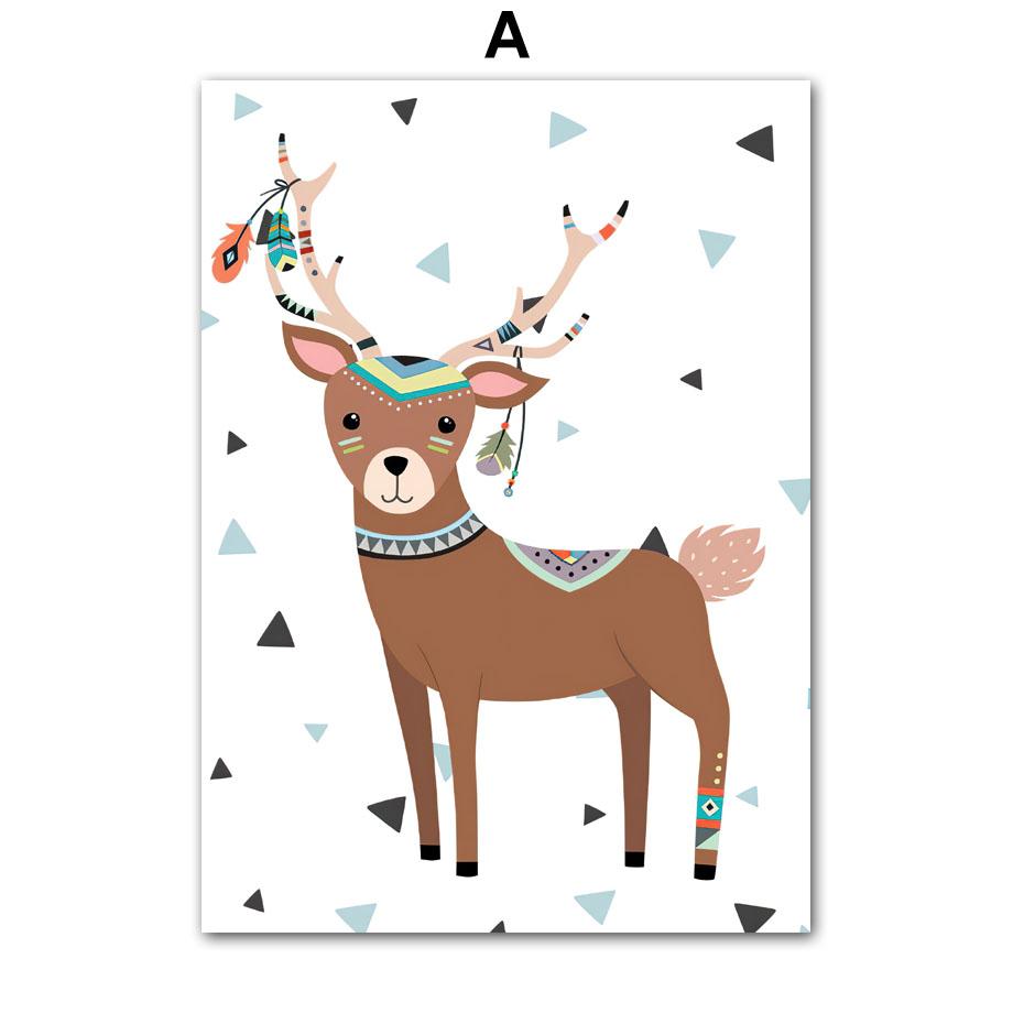 Каваи Медведь Олень Сова Лиса Обезьяна Перо Детская Комната Животные Постеры и Принты Настенное Искусство Холст Живопись Картинки Декор Детской Комнаты