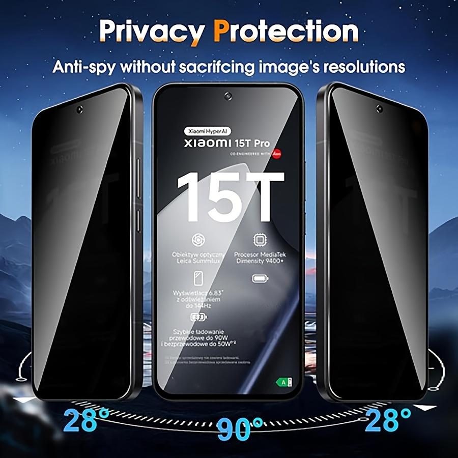 4 шт. [2+2] Защитное стекло для экрана с защитой от шпионажа для Xiaomi 15T/ Xiaomi 15T Pro, Защитная пленка для экрана от подглядывания + Стеклянная пленка для объектива камеры