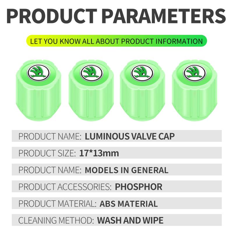 Светящиеся колпачки ниппелей автомобильных шин флуоресцентные колпачки для шин мотоциклетных колес для Skoda Octavia Superb Rapid Kodiaq Karoq Fabia Kamiq Roomster Citigo