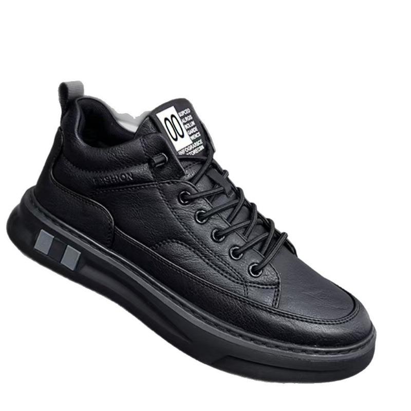Обувь мужская новая осенняя средней высоты черная универсальная черная кожаная обувь модные мальчиковые повседневные кеды