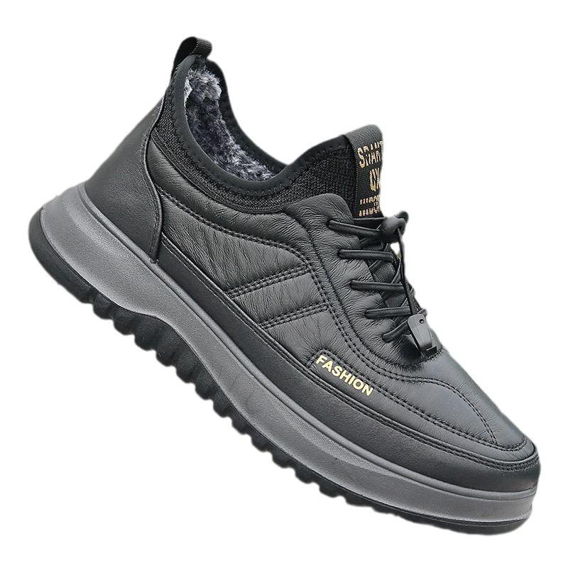 Хлопковая обувь мужская осенне-зимняя на толстой подошве удобная и легкая повседневная обувь уличная трендовая модная кожаный велюр теплая мужская обувь