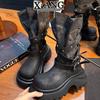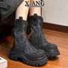 Leather Martin boots women's thick-soled heightened and thin small Chelsea short boots cigarette boots medium boots locomotive boots