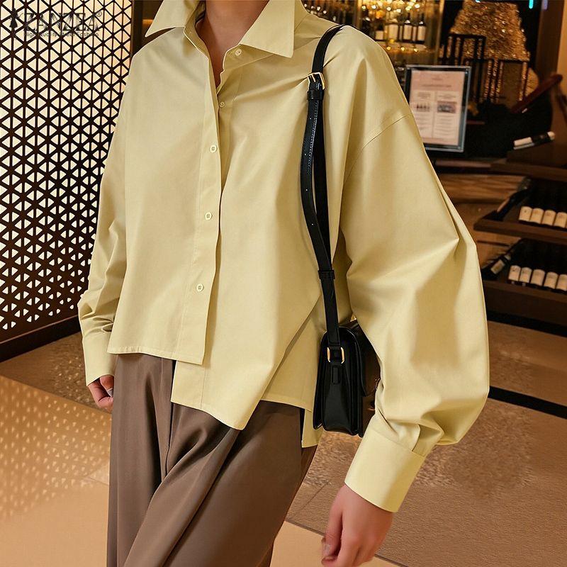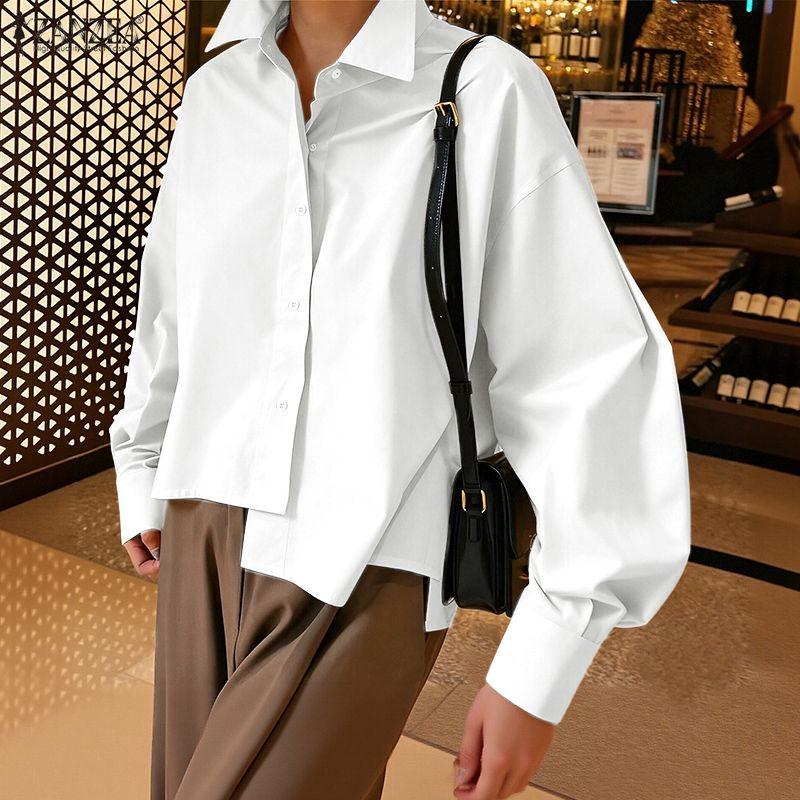 ZANZEA Женская свободная повседневная блузка с отложным воротником и длинным рукавом