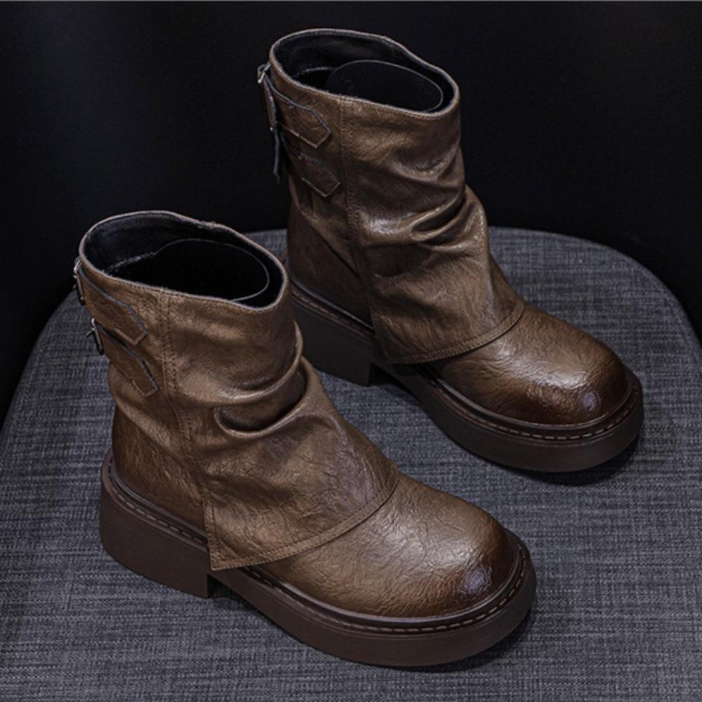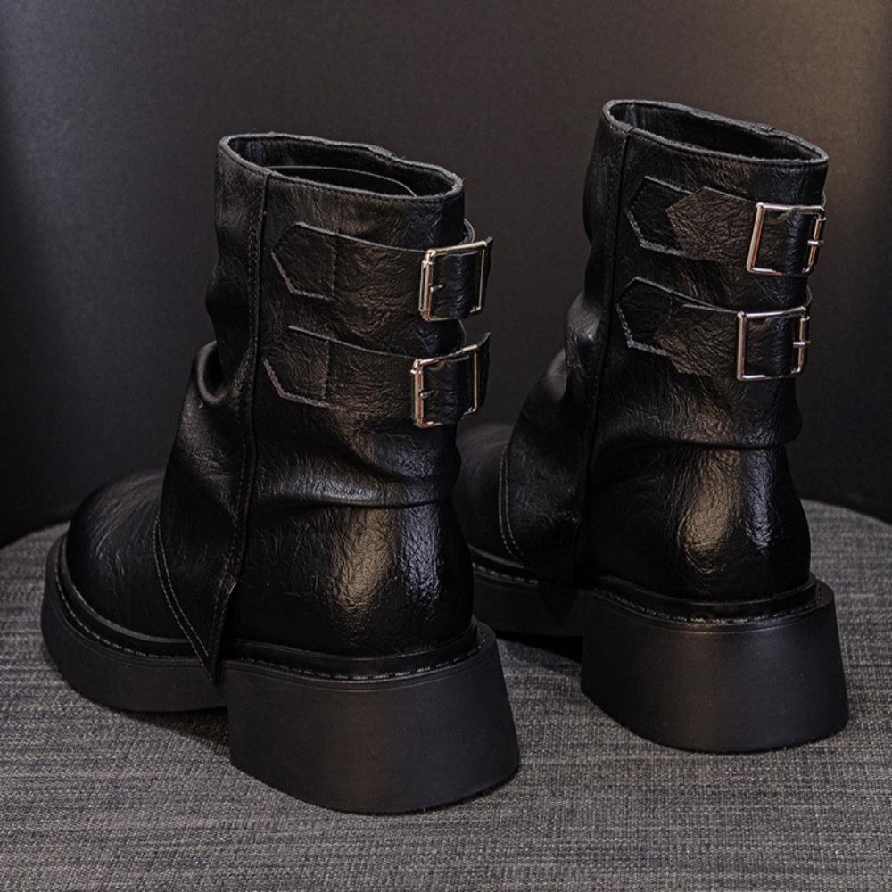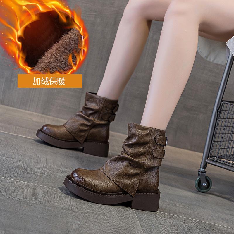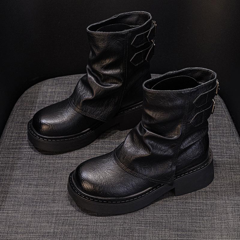 Женские ботинки на платформе с ремешком и пряжкой, короткие ботинки, женские 2025, новые, осенне-зимние, плиссированные женские ботинки