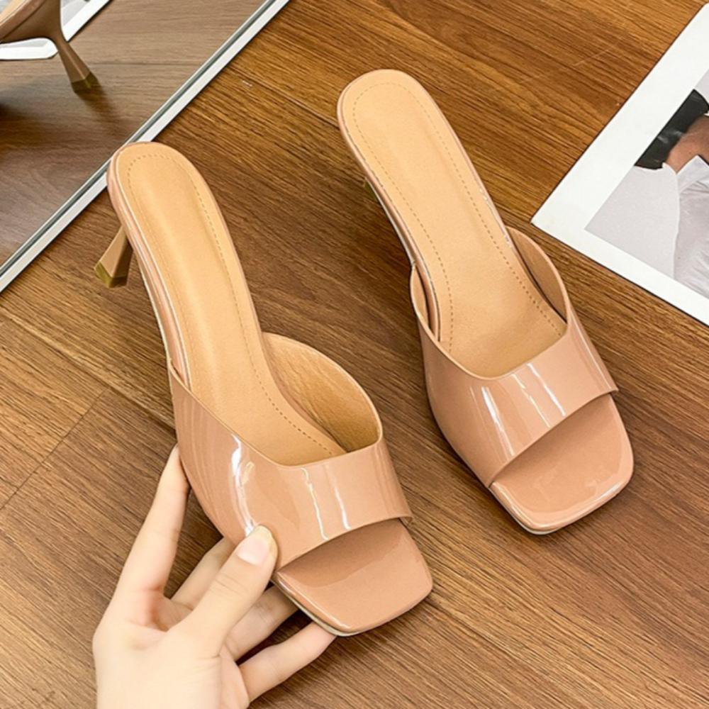 Женские тапочки, тапочки на высоком каблуке, женские сандалии, новые летние тонкие каблуки с квадратным носком, сексуальные уличные тапочки Chanclas Mujer