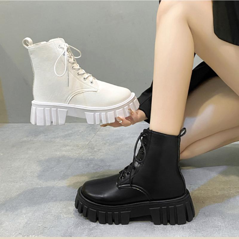 Женские новые зимние короткие ботинки Женские кожаные полусапожки с толстой подошвой Женские нескользящие ботинки для ходьбы Ботинки на шнуровке с молнией женские