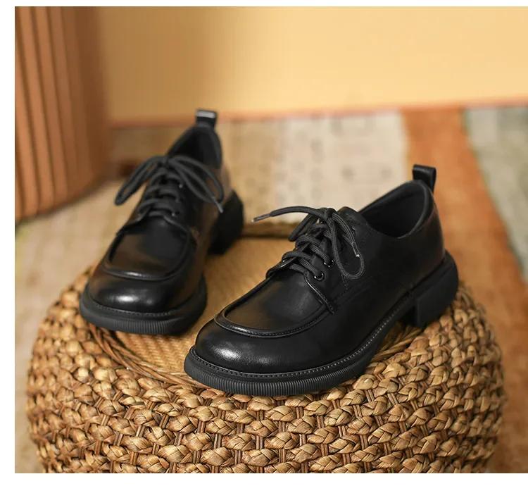 Кожаные лоферы большого размера женские 2025 весна-осень новая дизайнерская обувь для женщин английский шнурок мягкая основа повседневная женская обувь