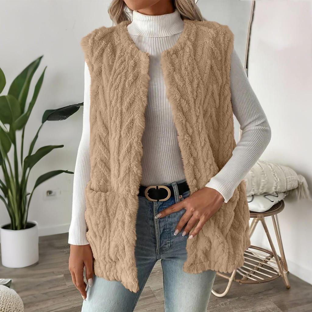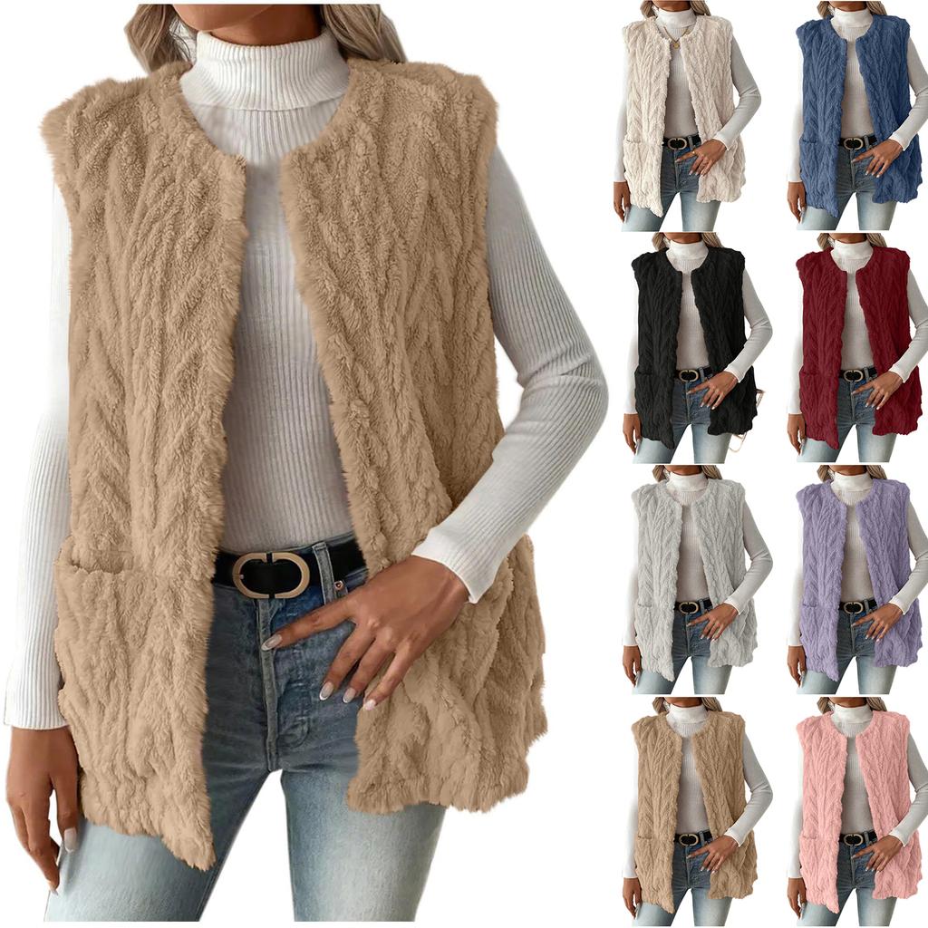 Модная женская зимняя плюшевая шерстяная куртка, повседневный вязаный жилет, теплое легкое пальто