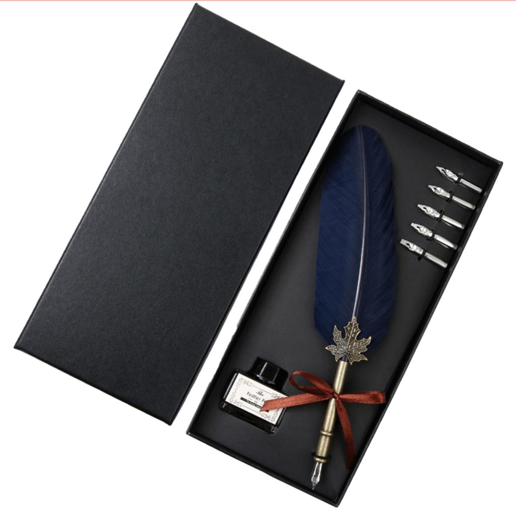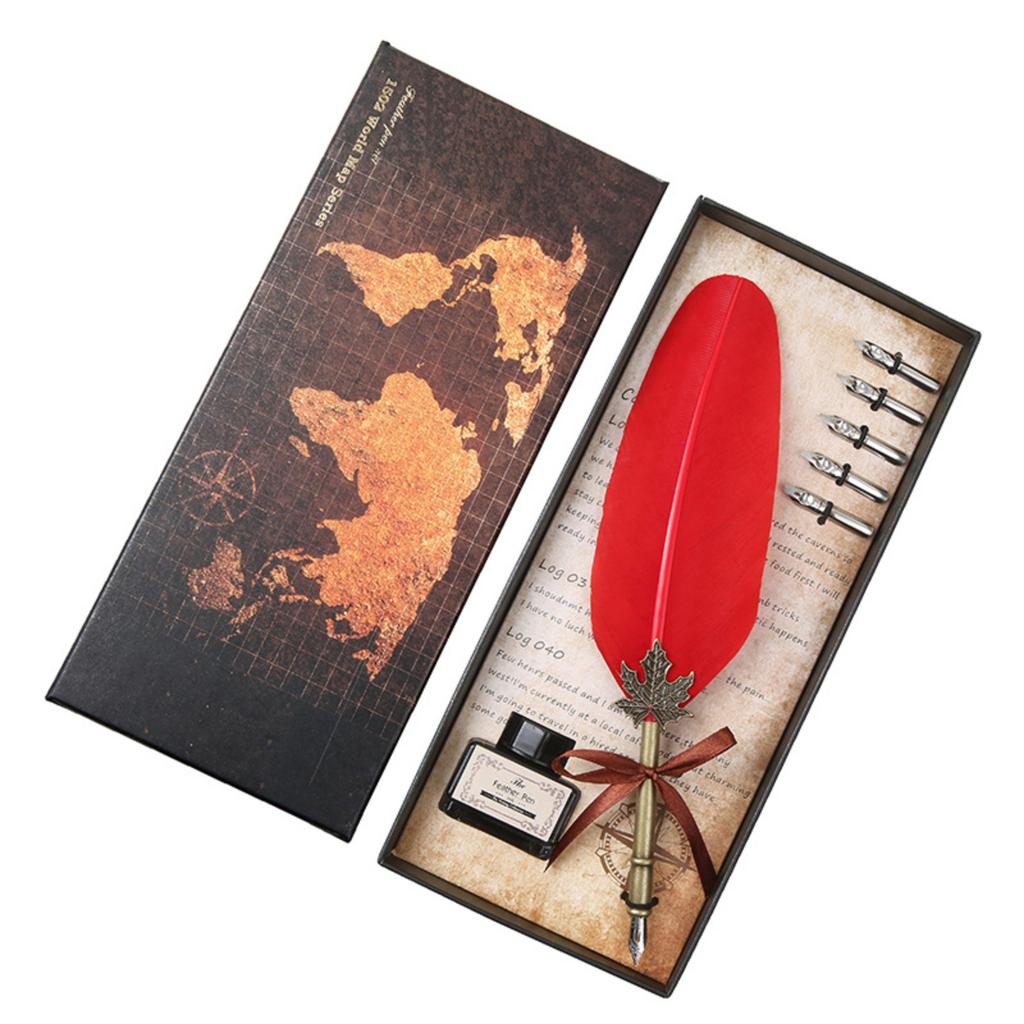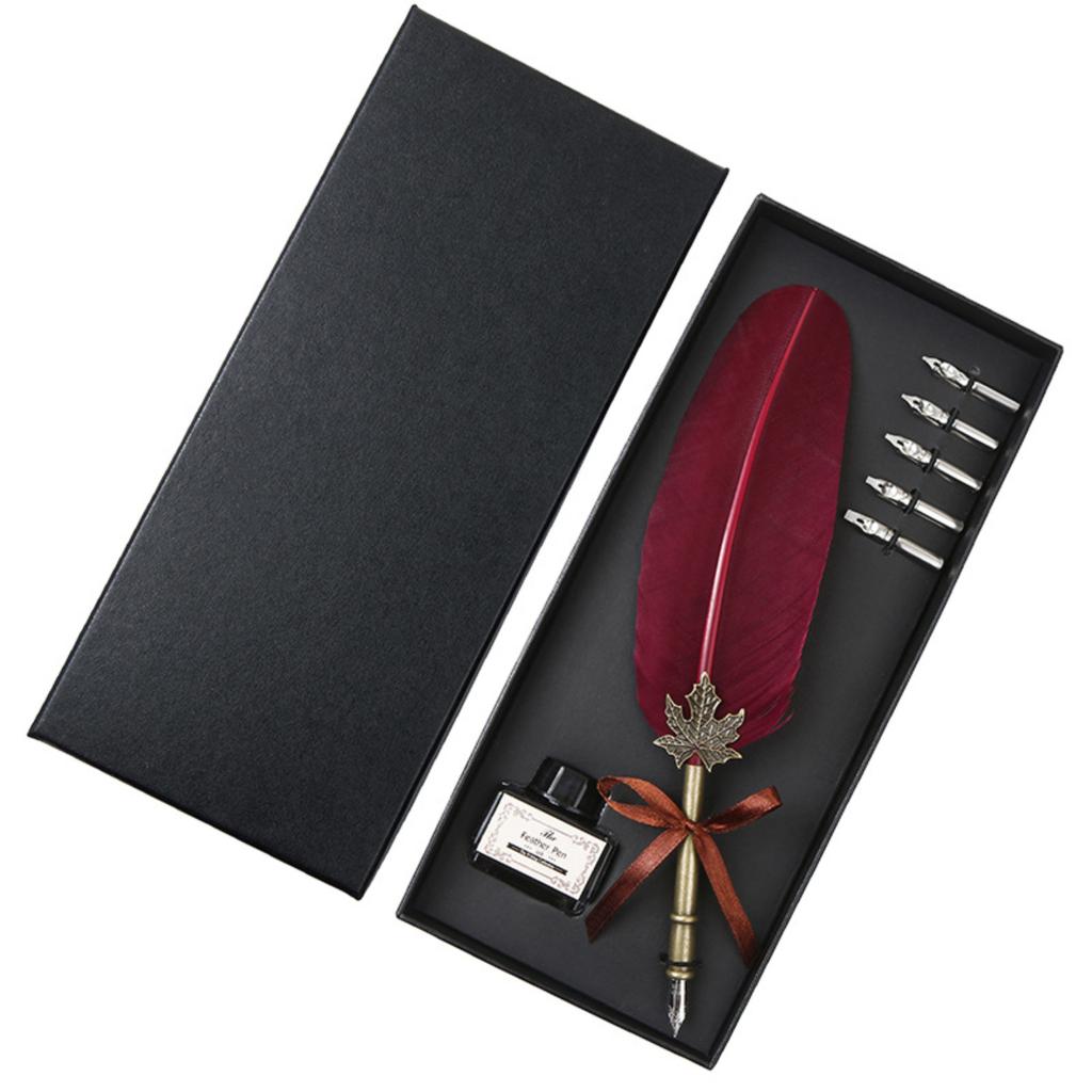 1 Set Retro Classic Texture Practical Calligraphy Feather Dip Pen Quill Foun-tain Writing Portable Birthday/Valentine's Day/Wedding Gifts 10ml