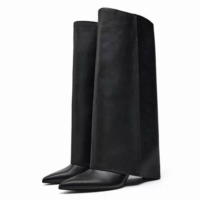 Женские ботфорты до колена Модные ботинки с острым носком Кожаные ботинки Дизайнерские ботинки-брюки Сексуальные ботинки на шпильке Длинные ботинки Туфли Ботинки Ботас Мухер