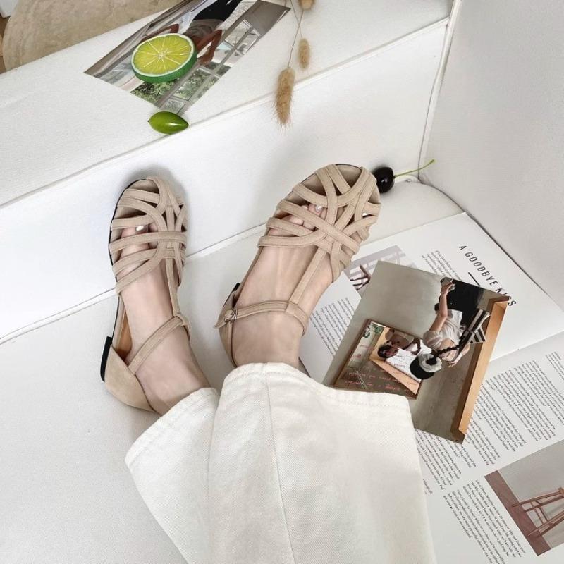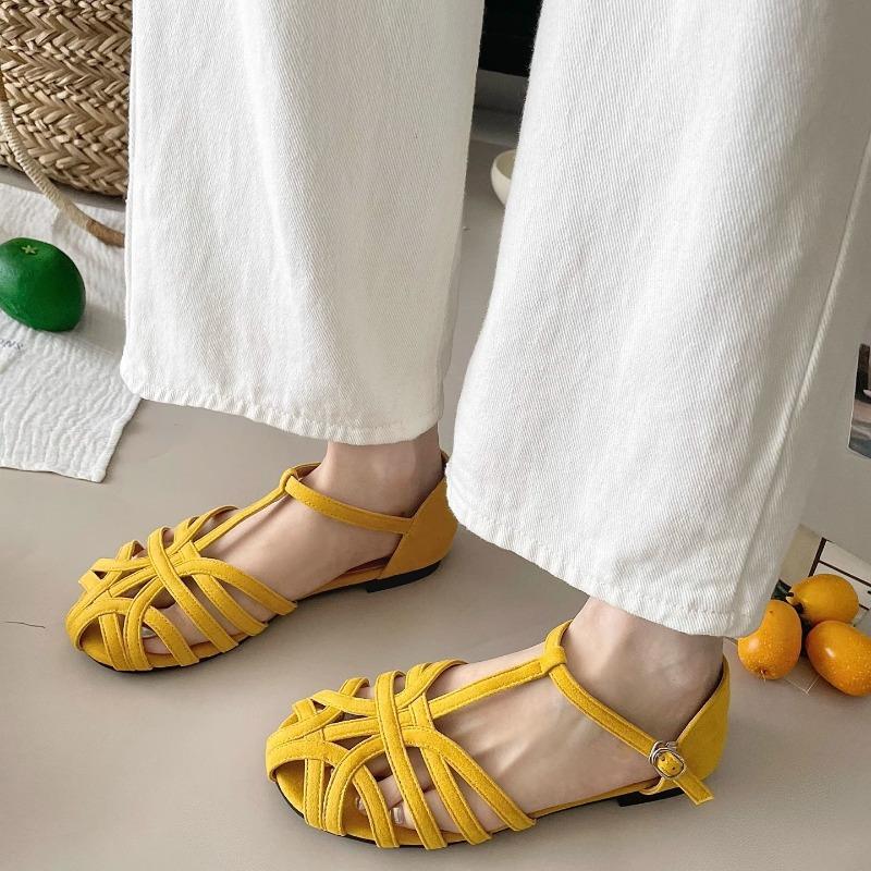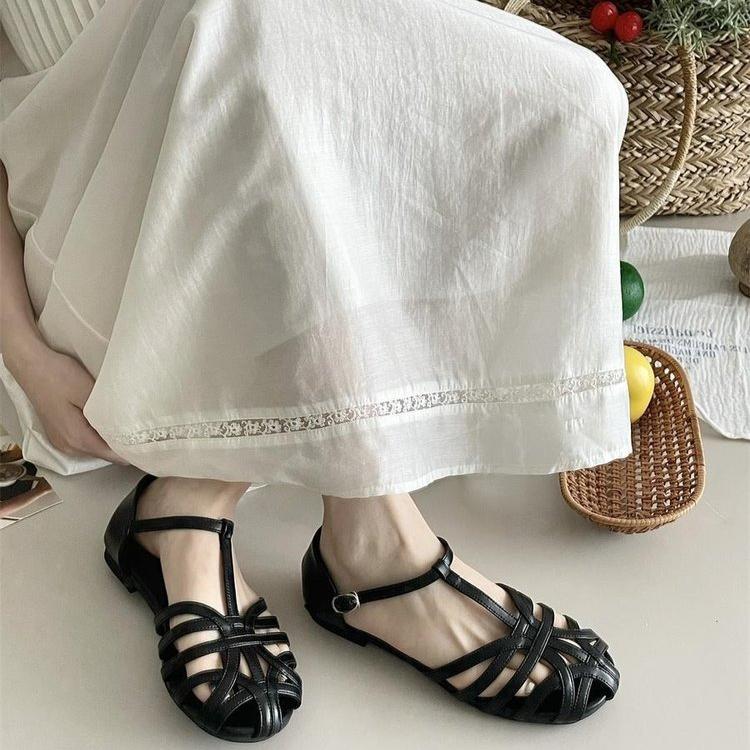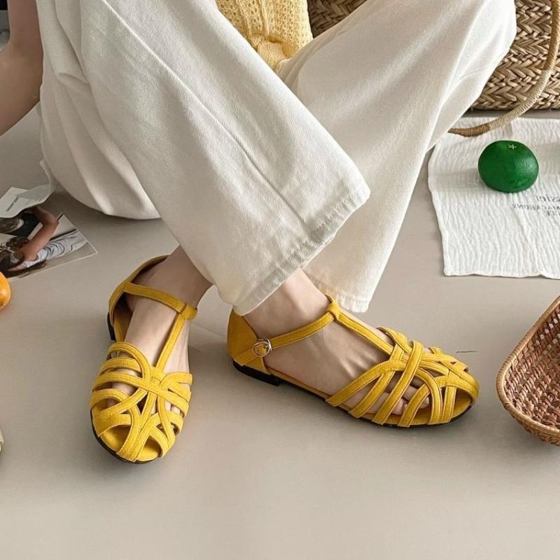 Женские балетки Летние дышащие сандалии с вырезами Ретро французские римские туфли для женщин Комфортные повседневные балетки Sandalias Mujer