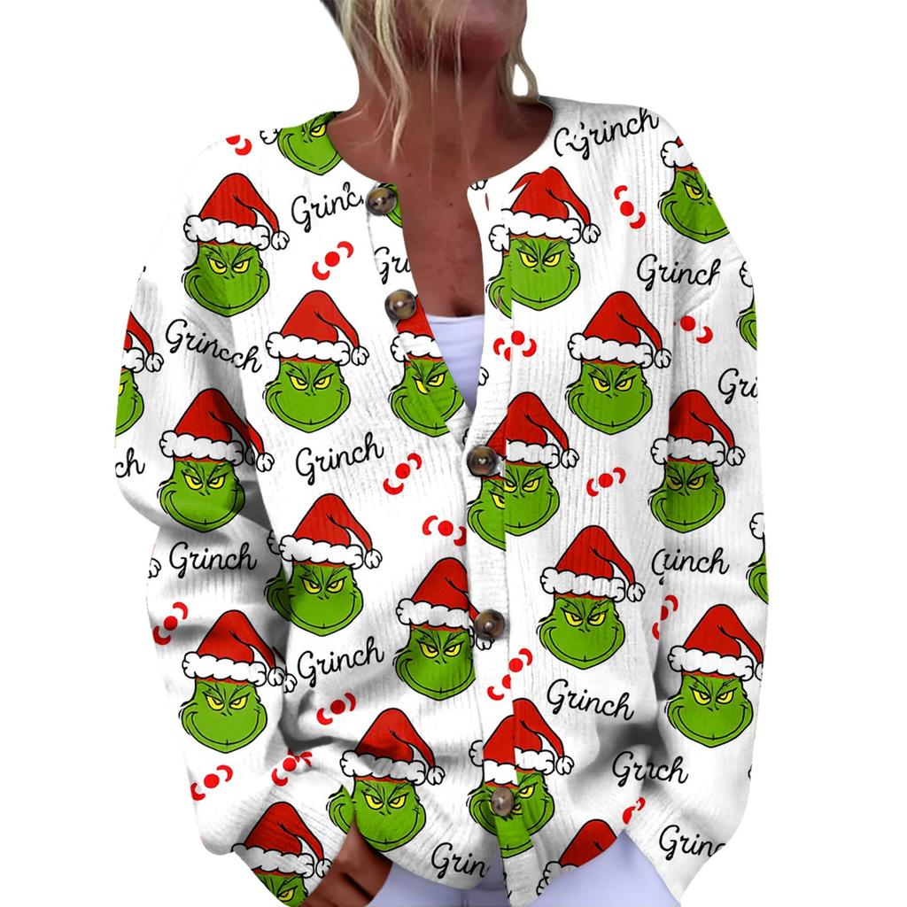 Женская мода рождественский принт длинный рукав вязаный кардиган пуховик