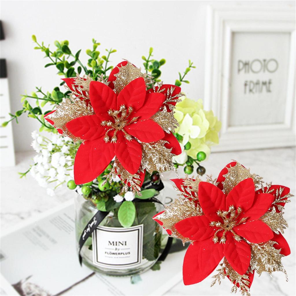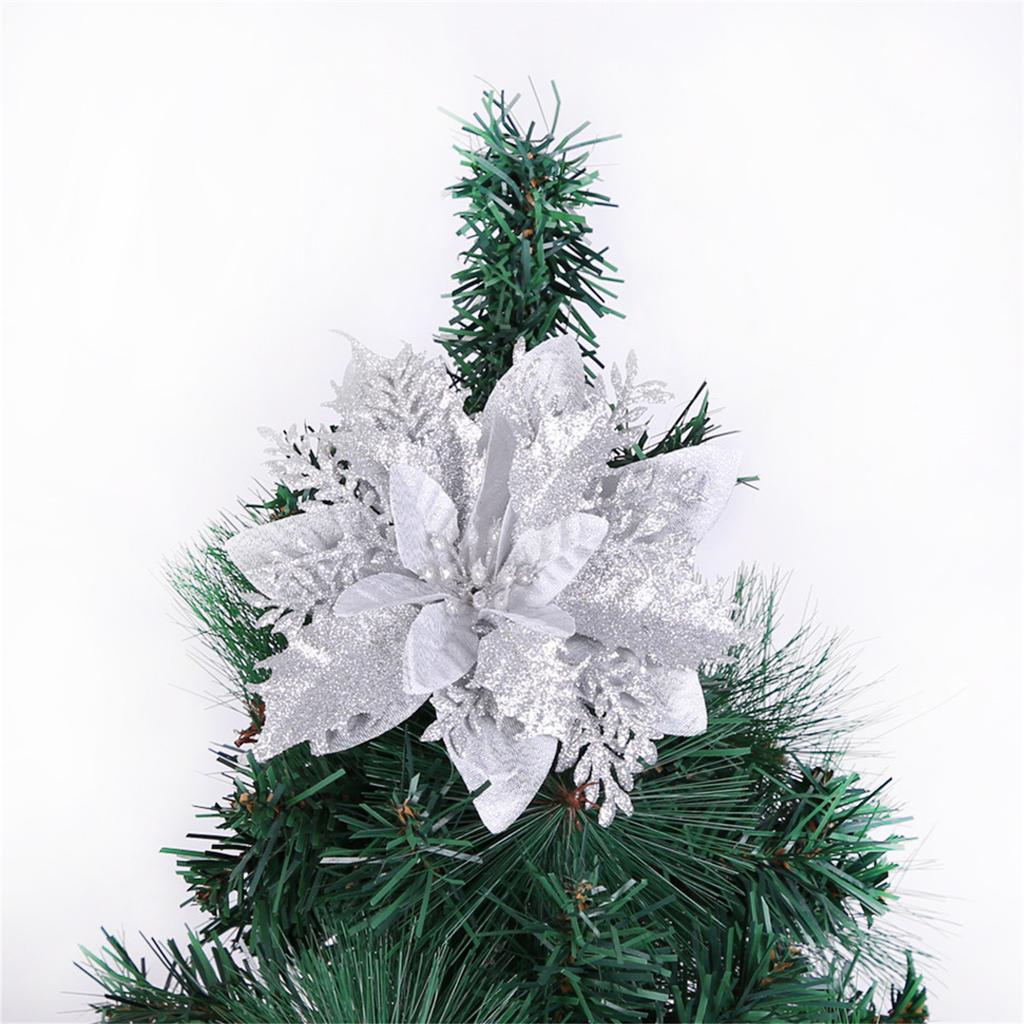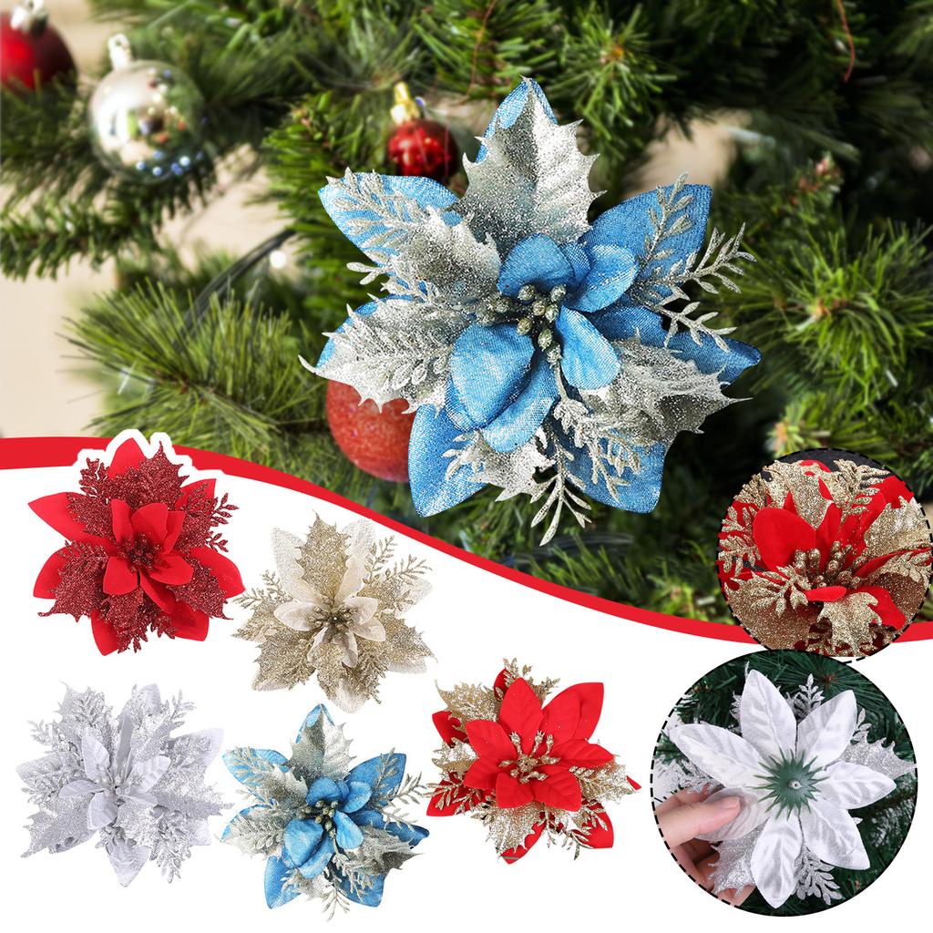 Блестящие рождественские цветы, искусственные цветы, веселые рождественские украшения, украшения для дома, рождественские елочные украшения, подарок на Новый год