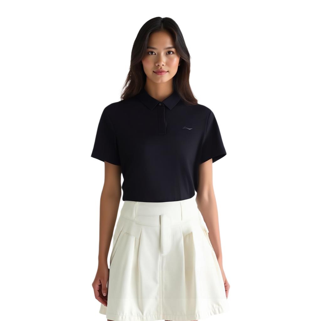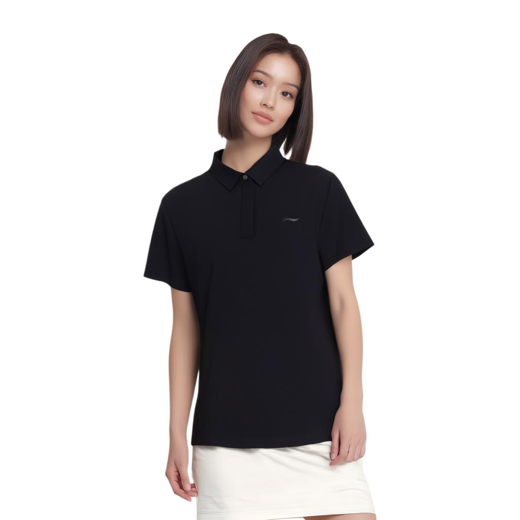 Серия групповых покупок Li Ning Однотонная Мягкая Удобная Дышащая Универсальная Повседневная Футболка-поло с коротким рукавом Женские футболки-поло Черный APLU770-1