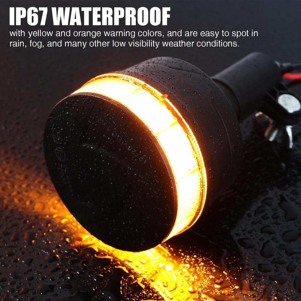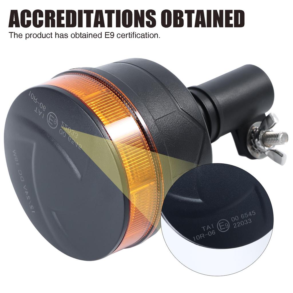 СУПЕР ВИДИМОСТЬ - Стробоскоп для крепления на трубу использует 30 светодиодных чипов высокой интенсивности, охват 360 градусов полностью освещается со всех сторон для максимальной светоотдачи и обеспечения более эффективного предупреждения других транспортных средств.. Яркие янтарные проблесковые маячки для транспортных средств хорошо видны в дождь, туман и снег, видимы днем и ночью.