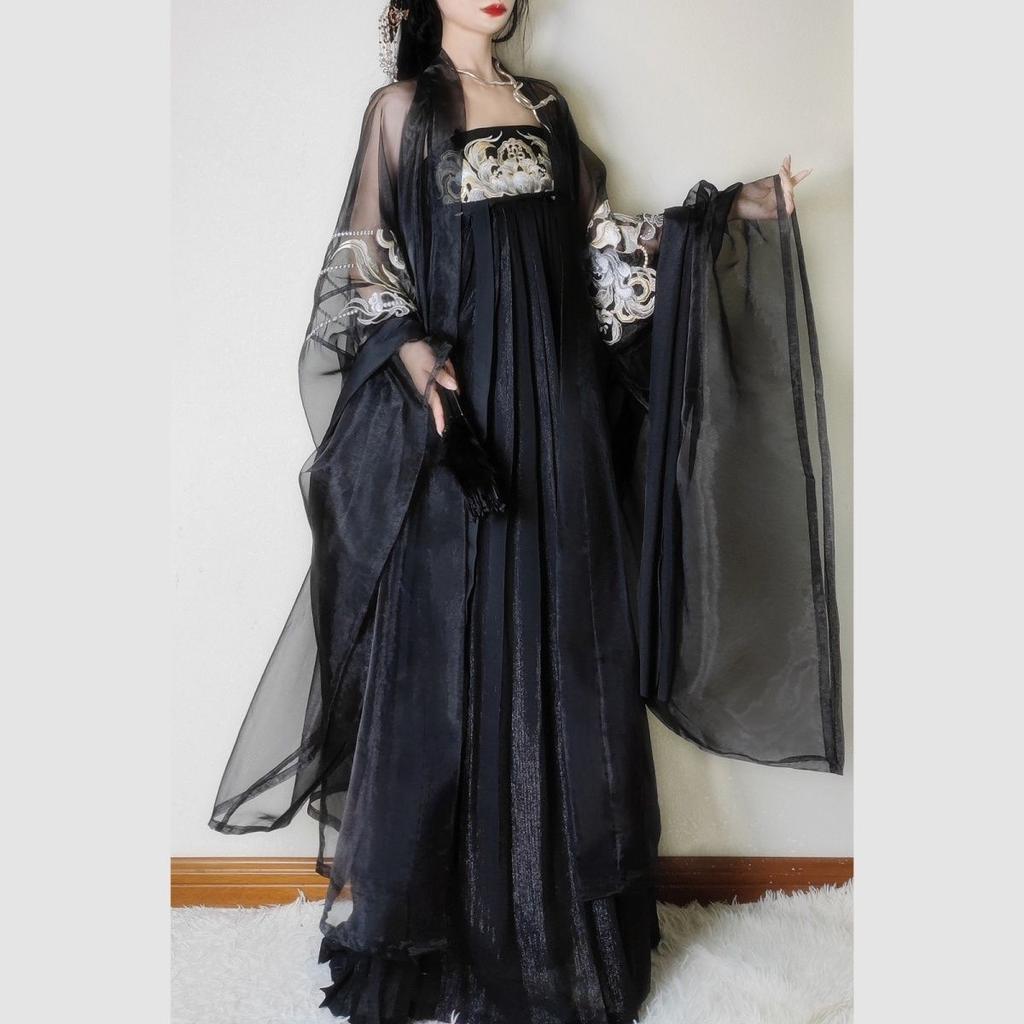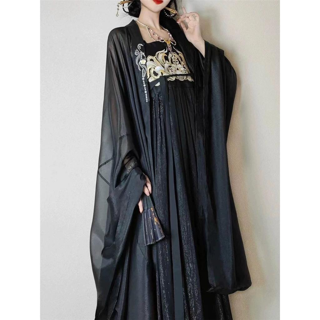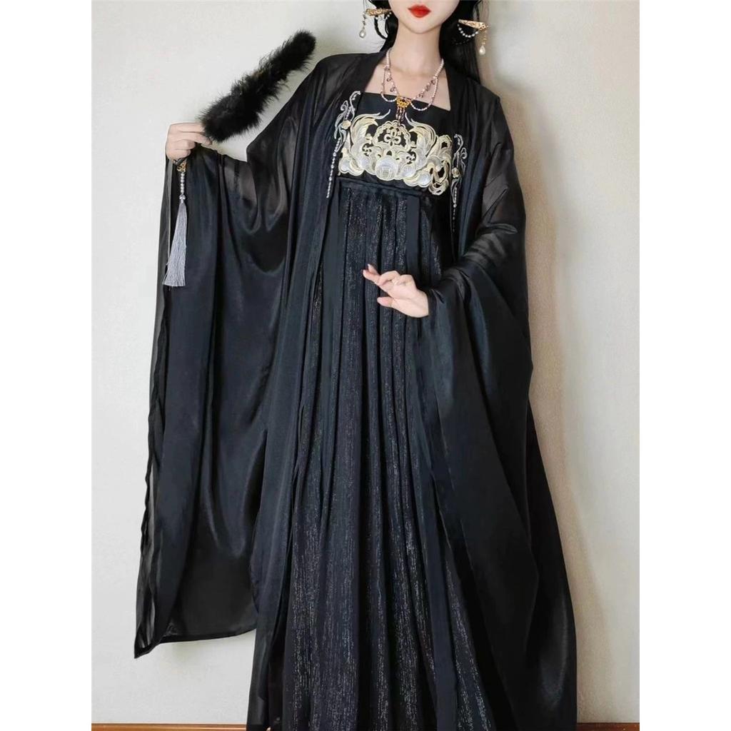 Ханьфу в стиле династии Тан для женщин, юбка Хэ Цзы, черное вышитое, широкие рукава, повседневный комплект