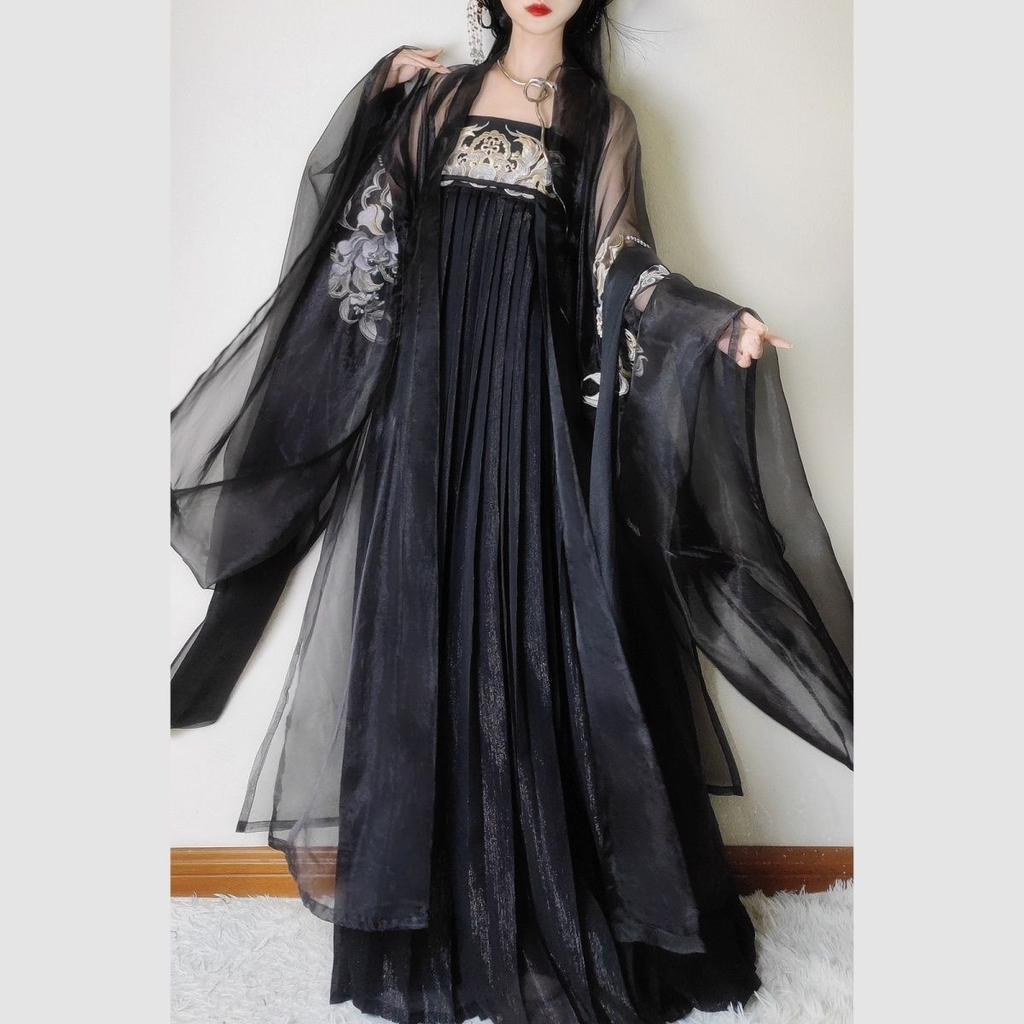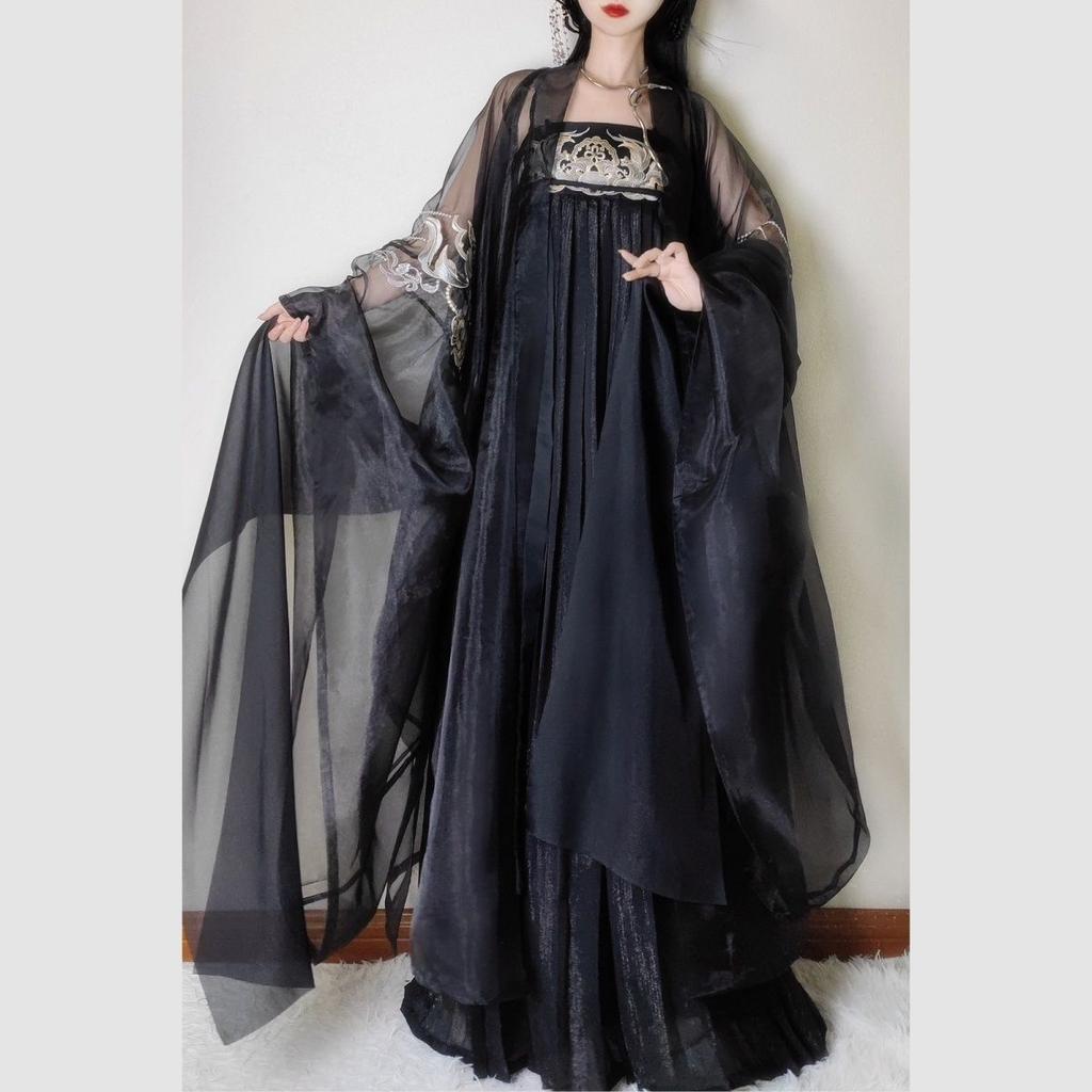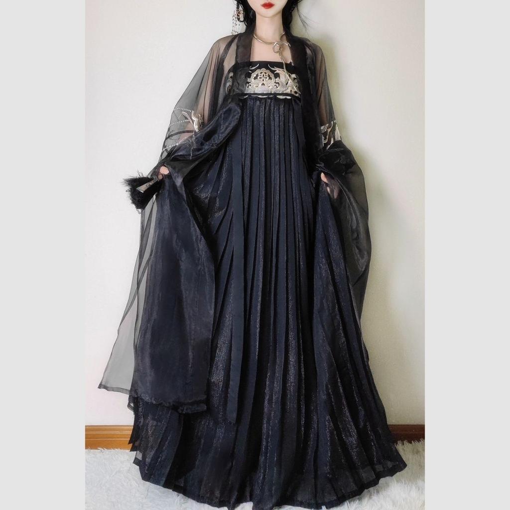 Ханьфу в стиле династии Тан для женщин, юбка Хэ Цзы, черное вышитое, широкие рукава, повседневный комплект