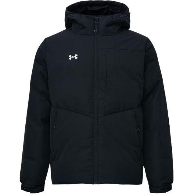 Under Armour Однотонный логотип Куртка с капюшоном Уличная теплая Флис Эластичные длинные брюки Повседневный спортивный комплект Мужские комплекты Черный 24600708-001+23600801-001
