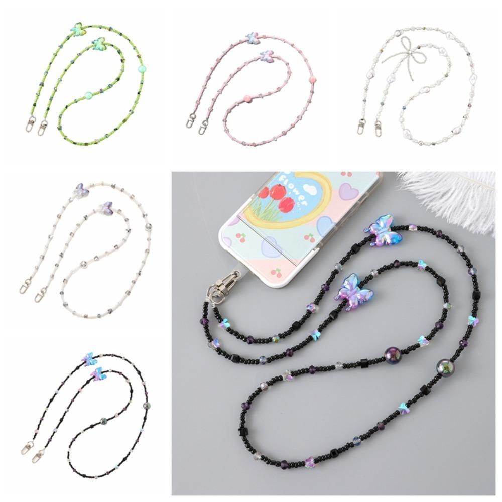 Ремешок для телефона с бусинами против потери, красочный шнурок для мобильного телефона с бабочками, мобильный телефон
