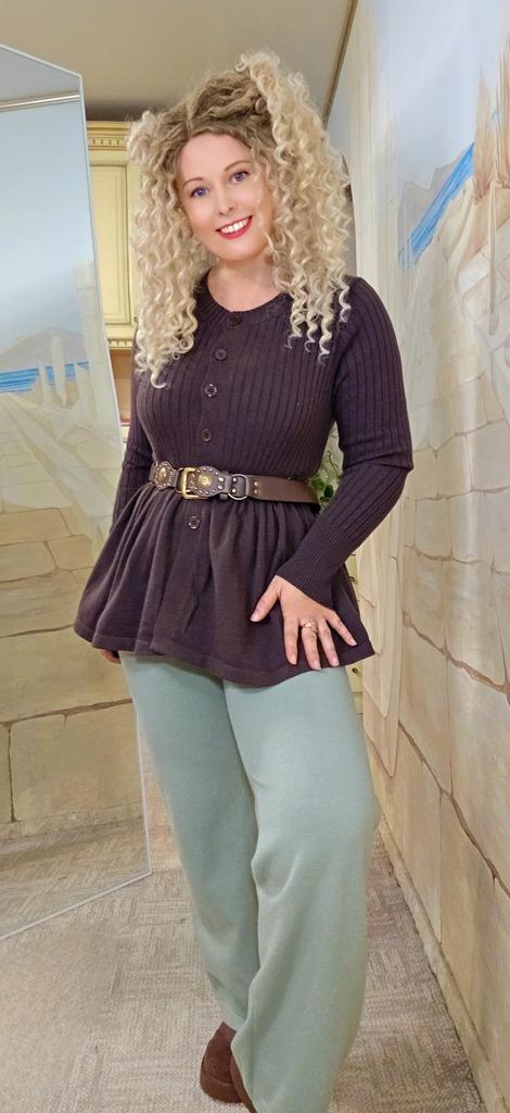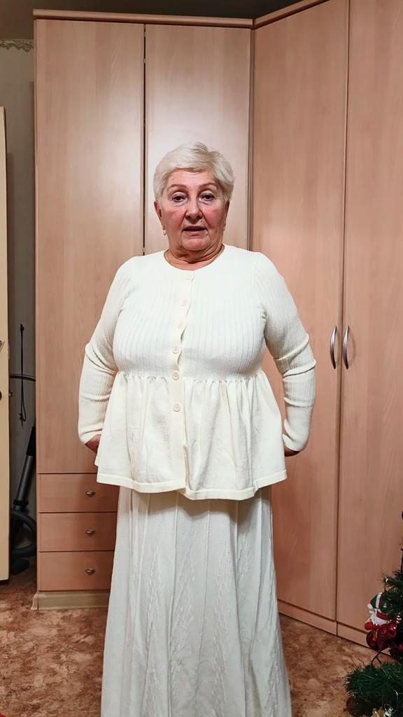 Романтичный кардиган с баской 🤍 Всем солнечный приветик 👋😉 Женственные образы с таким кардиганом получаются романтичными, лёгкими и нежными 🥰 С ремешком смотрится тоже очень красиво 🫶 Сядет и на 42 и на 54 размер Мамулины параметры: 🎗рост 157см 🎗вес 73кг 🎗длина плеч 42см 🎗объём груди 110см 🎗объём талии 95см 🎗объём бёдер 105см. Мои параметры: 🎗 рост 160см 🎗 вес 53кг 🎗 длина плеч 40см 🎗 объём груди 93см (75D) 🎗 объём талии 63см 🎗 объём бёдер 93см. Качество: 🤍 акрил, приятный к телу 🤍 не светится 🤍 тянется 🤍 застёгивается на среднего размера пластиковые пуговицы в цвет кофты 🤍 швы ровные 🤍 качество отличное. Точные замеры кардигана: 📏 ОГ - 88 - 106см 📏 ОТ - 102см 📏 объём низа кардигана - 164см 📏 плечи - 32см 📏 длина рукава от воротника - 69см 📏 длина рукава от плечевого шва - 61см 📏 длина кардигана от плеча и до баски - 37см 📏 вся длина кардигана - 62см 📏 объём проймы - 44см 📏 объём манжеты - 16см. Мы кардиганом довольны очень-очень и рекомендуем его всеми ручками 🤗💞 Спасибо, продавцу и Джуму 😘 Чмок всех кто со мной на Джумике 😘 Желаю удачных покупок и весны в душе ❤️ До скорого 🙌😊 Песня во втором видео: Серябкина «Ласт Крисмас» 🎶💃🎶