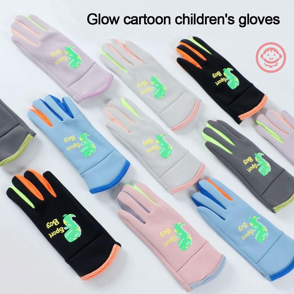 Windproof Full Finger Gloves Nightlight Snowboard Mittens New Children Ski Gloves Outdoor Sports