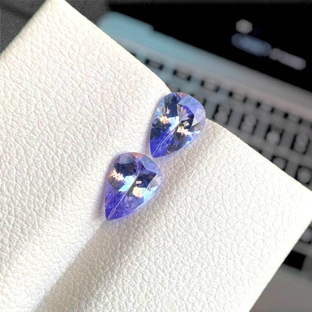 Лучшее качество Качество A+ Чистый для глаз 2 шт. Натуральный танзанит драгоценный камень, Свободный камень огранки «груша», Целебный драгоценный камень.