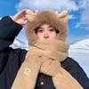 Ear Protection Bear Deer Ears Hat Soft Plush Integrated Cap Scarf Cartoon Winter Hat Women
