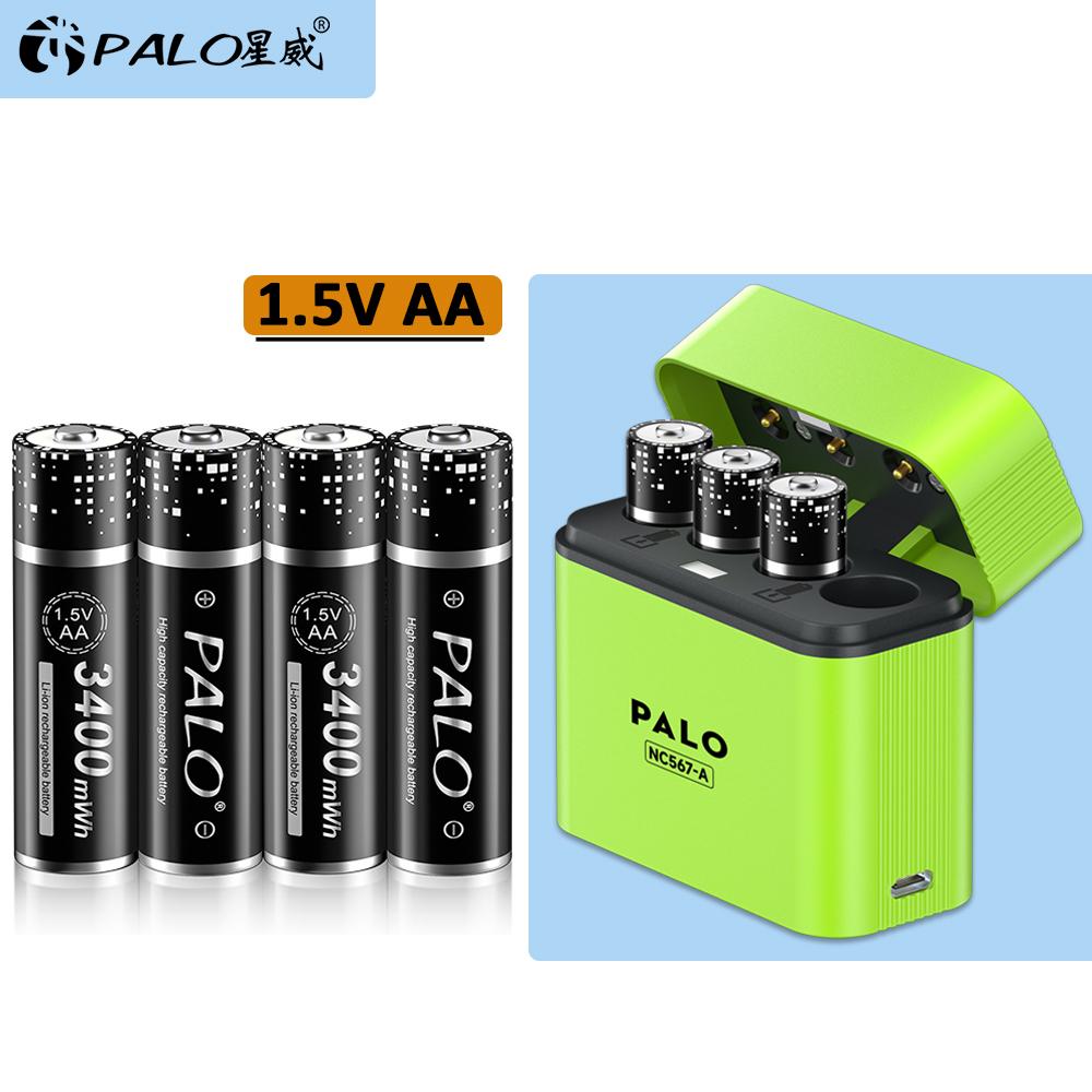 PALO AA 1.5V Перезаряжаемые литиевые батарейки 3400мВтч 1.5V Li-ion AA Батарейка Интеллектуальный зарядный бокс с дата-кабелем TYPE-C — купить товар онлайн с бесплатной доставкой по всему миру!