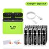PALO Аккумуляторные литиевые батарейки AA 1,5 В 3400 мВт·ч 1,5 В литий-ионные батарейки AA Интеллектуальный зарядный бокс с дата-кабелем TYPE-C