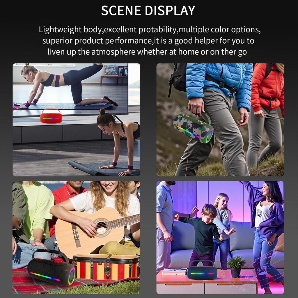 TWS 20 Вт Ударный бас Крутой световой эффект Портативная Bluetooth-колонка Стереозвук Беспроводной сабвуфер Бумбокс Домашнее караоке Водонепроницаемый