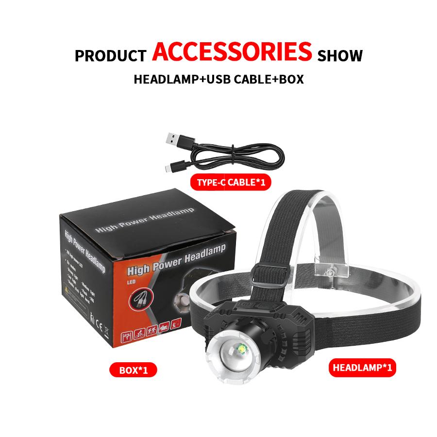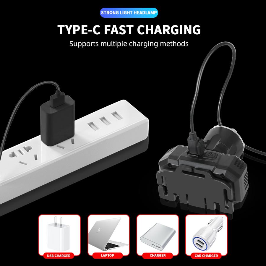 Мощный светодиодный налобный фонарь с USB-подзарядкой, рыбацкий налобный фонарь со встроенным аккумулятором, уличный, для кемпинга, аварийный, рабочий фонарь