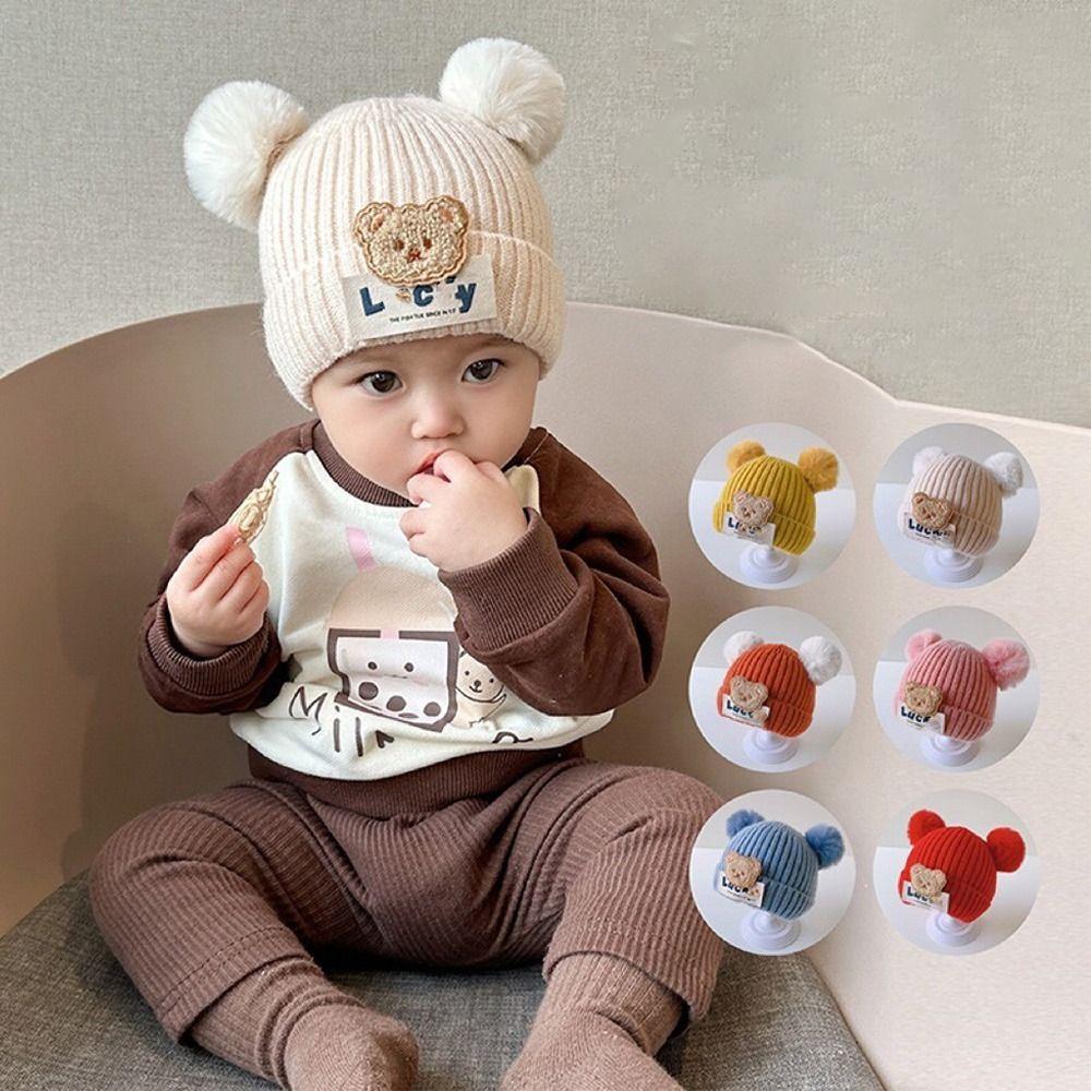 0-3Year Plush Ball Baby Knitted Hat Solid Color Beanie Hats Children Warm Cap Baby Children Kids