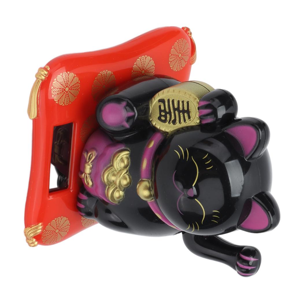 Кот, привлекающий богатство, на солнечной батарее, милый счастливый кот с машущей лапой для дома, офиса, машины, черный