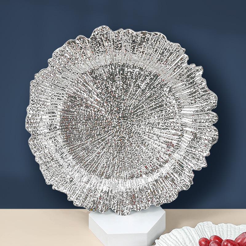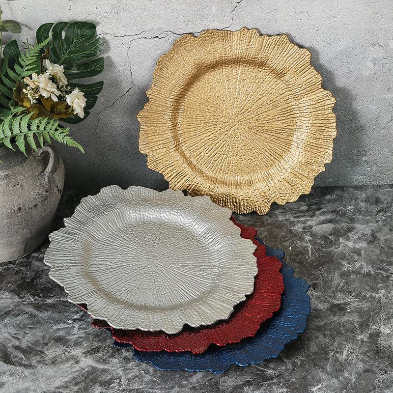 1 шт. Риф Неправильная тарелка Декоративная тарелка Золото Серебро Сервировочная для ужина Свадебный Рождественский декор Настольное место Тарелка для стейка