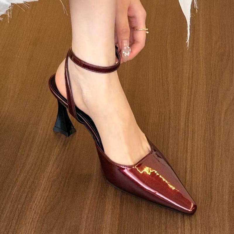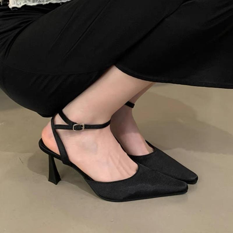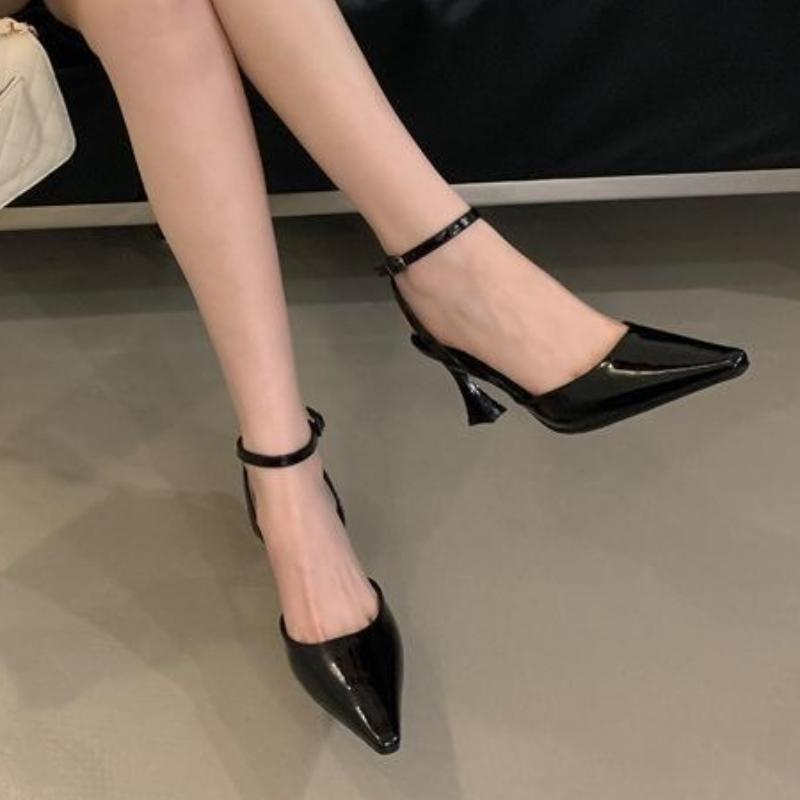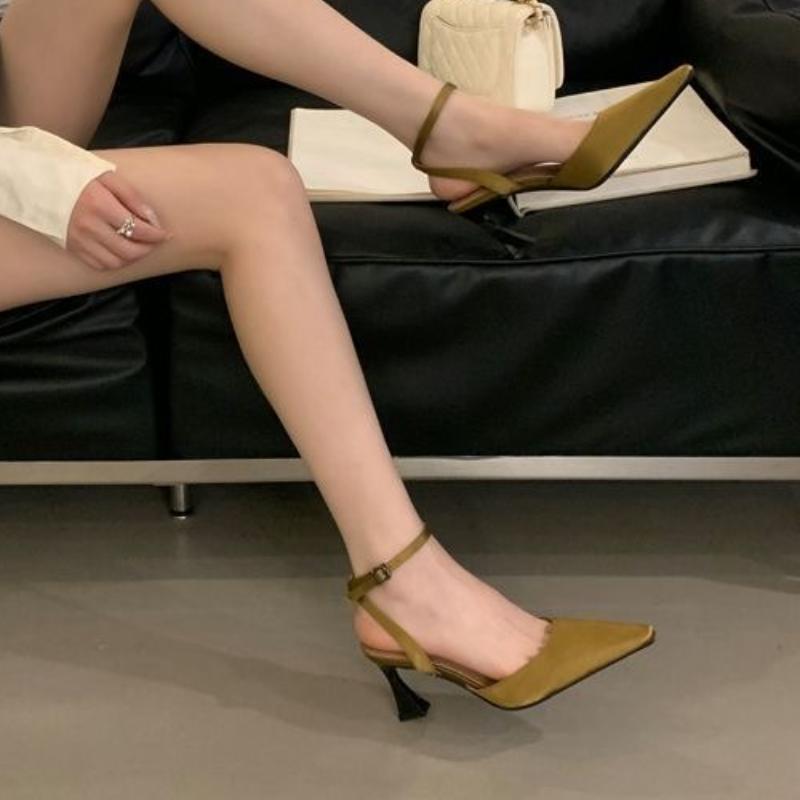 Летние женские босоножки на высоком каблуке, модные туфли с острым носком и ремешком на щиколотке, элегантные сандалии для танцев и вечеринок