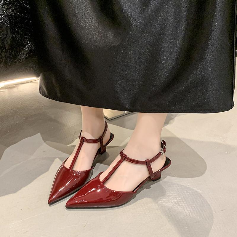 Новый бренд Женские сандалии Мода Острый носок Тонкий низкий каблук Женские элегантные туфли-слингбэки Туфли-лодочки для платья
