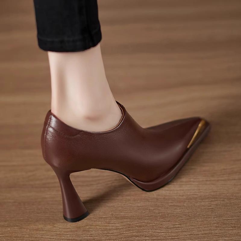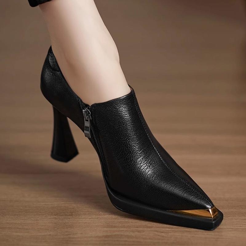 Новая Мода Маленький Темперамент Высокие Каблуки Металлический Железный Носок 2025 Маленькая Обувь Повседневные Одиночные Туфли Блочный Каблук