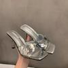 Лето 2025 Горячие Продажи Женские Туфли на Высоком Каблуке и Шлепанцы Модные и Элегантные Квадратный Носок Уличные Универсальные Серебристые Женские Туфли
